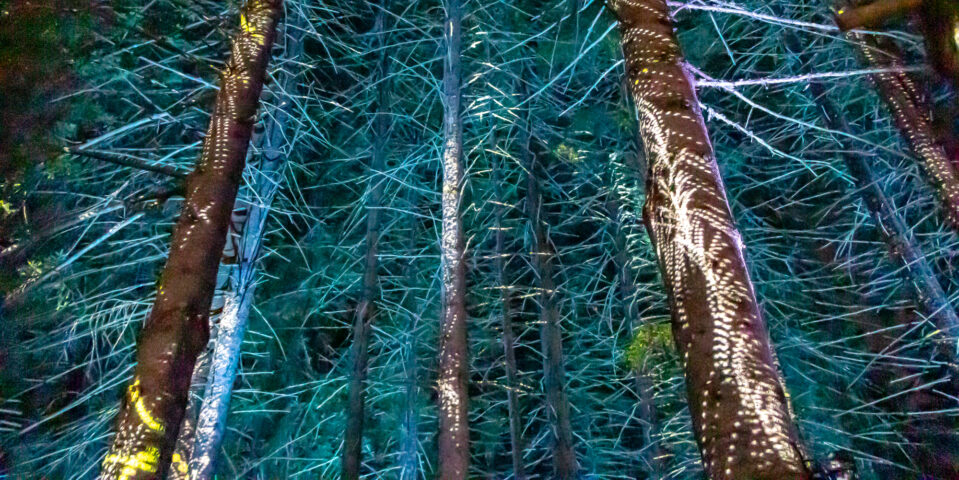 L’expérience Alta Lumina les Gets : Un parcours enchanté où lumière, vidéoprojection et son s’entrelacent pour transformer la forêt en un voyage immersif.