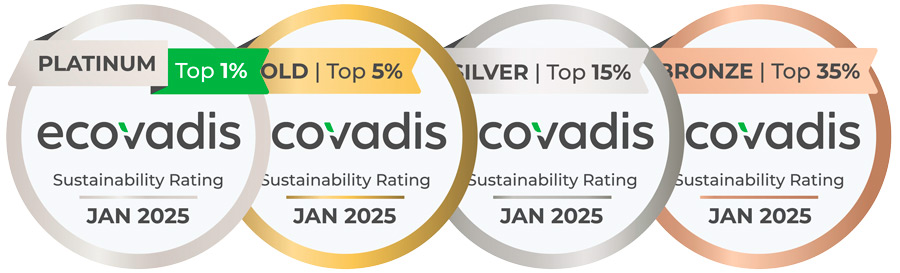 Les médailles EcoVadis sont des distinctions. En matière de durabilité, elles permettent de reconnaître les entreprises ayant atteint des niveaux élevés de performance.