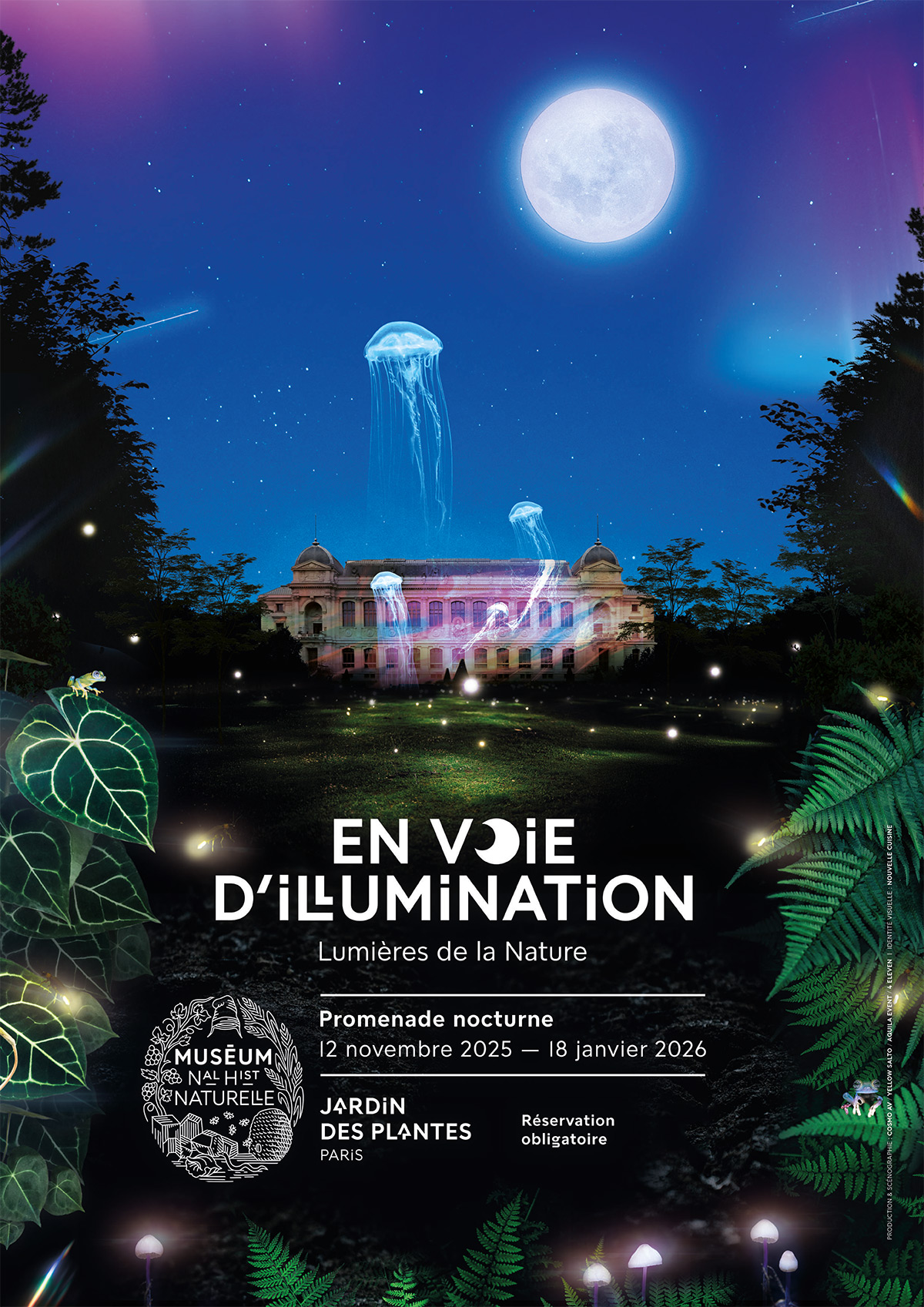 Pour l’édition 2025 d’En voie d’illumination, le Jardin des Plantes se réinvente. Le parcours nocturne devient immersif grâce aux dernières technologies : mapping vidéo, lasers, hologrammes et sons inédits plongent petits et grands dans les « Lumières de la Nature ».