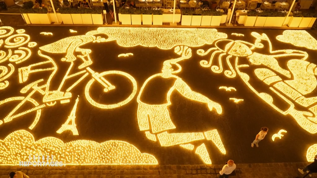 Photo en tête de l’article : Les jeux plein les yeux, cour Hôtel de la Marine, Paris – Illustratrice Zeina Abirached – Artiste lumière Muma – 27 avril 2024 – Extrait du film de Grands reportages © TF1, SN-Editel