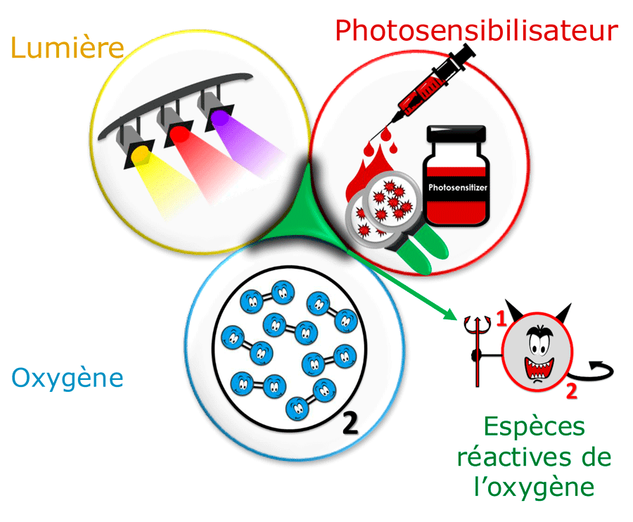 Selon Céline Frochot, directrice de recherche au CNRS et présidente de la Société francophone de photonique médicale, la PDT repose sur trois éléments clés :