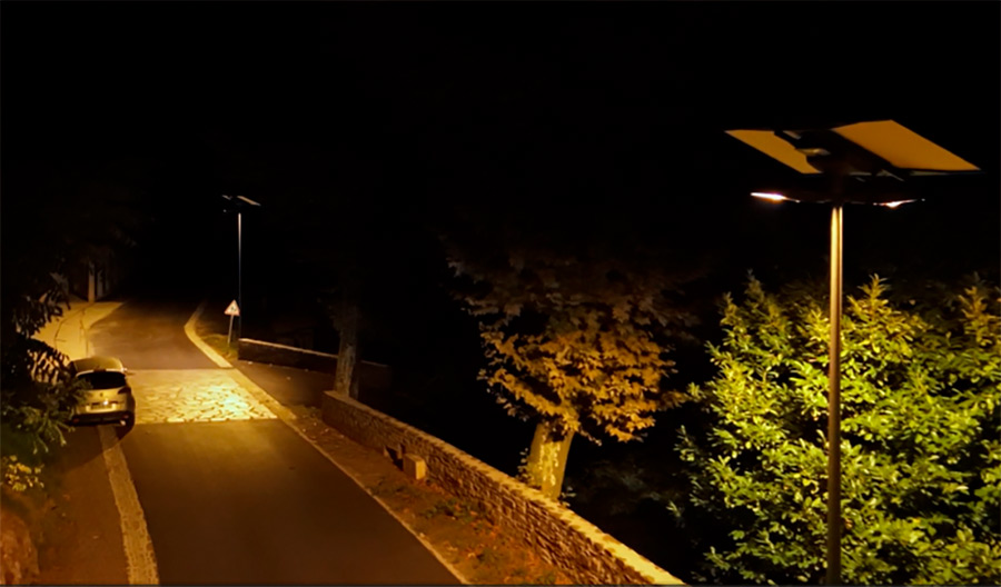 Pour l’ensemble de la communauté de 226 habitants, organisée en autoconsommation collective, il y a eu la réfection des réseaux d’eau potable ainsi que l’amélioration de l’éclairage public. Cette initiative vise à réduire les coûts énergétiques en adoptant un éclairage solaire. Chacun se compose d’un mât GHM avec un luminaire Eclatec et ainsi que d’un panneau solaire. Bien sûr, ce choix a ses contraintes, avec des batteries à recharger, mais il s’agit d’un système intelligent.