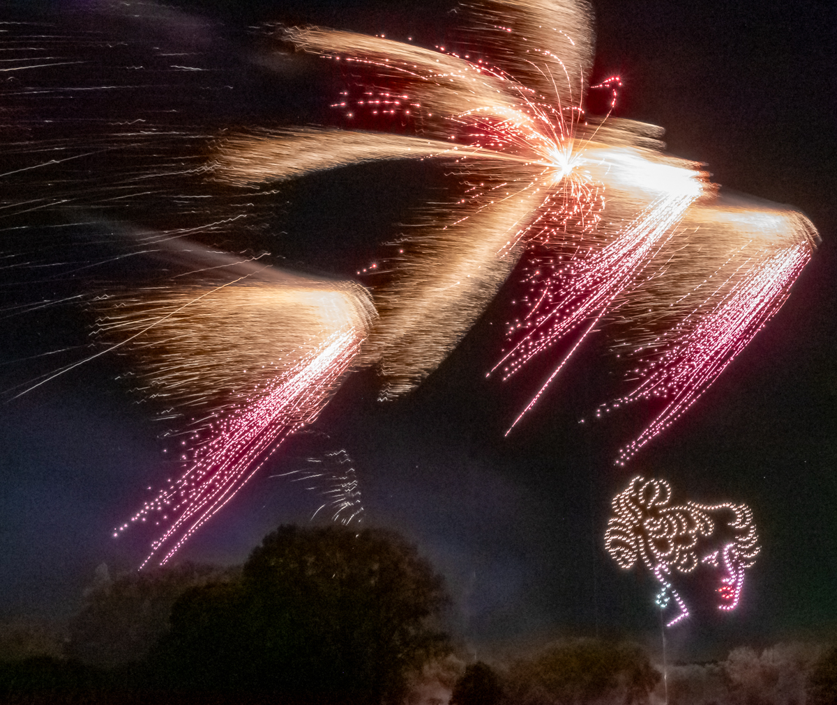 - Spectacle de drones lumineux deviennent pyrotechniques