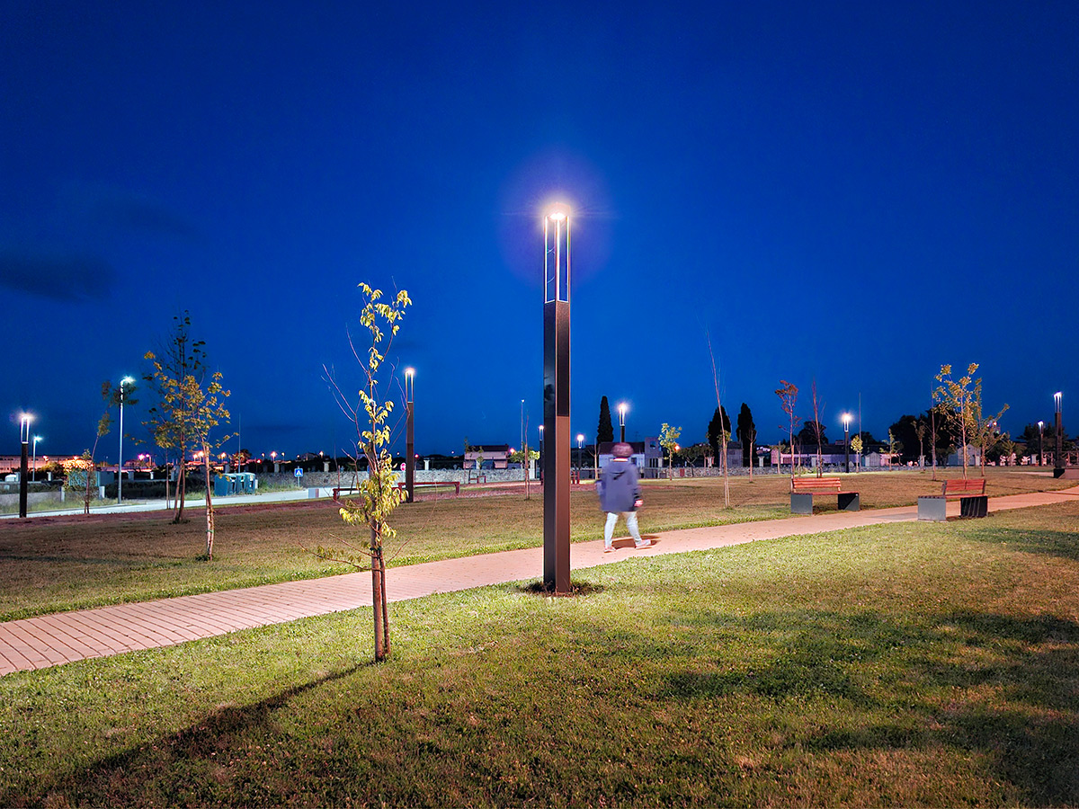 La précision photométrique de Schréder, associée au savoir-faire solaire de Photinus, constitue une plateforme performante adaptée à de nombreux usages, de l’éclairage urbain aux infrastructures de transport. Les solutions développées conjuguent exigence technique et qualité d’intégration. Leur signature repose sur un design épuré, dans lequel les modules photovoltaïques à haut rendement sont directement incorporés au mât d’éclairage. Cette approche supprime le recours à des panneaux externes volumineux et garantit une intégration harmonieuse dans tous les environnements.