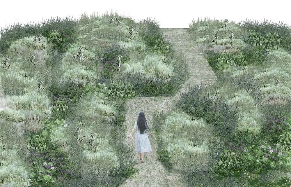 En réunissant les mondes de la menthe et de l’armoise, ce jardin invite les visiteurs à explorer des sensations contrastées, où les transitions entre sec et humide se vivent intensément, éveillant ainsi les sens à chaque pas.