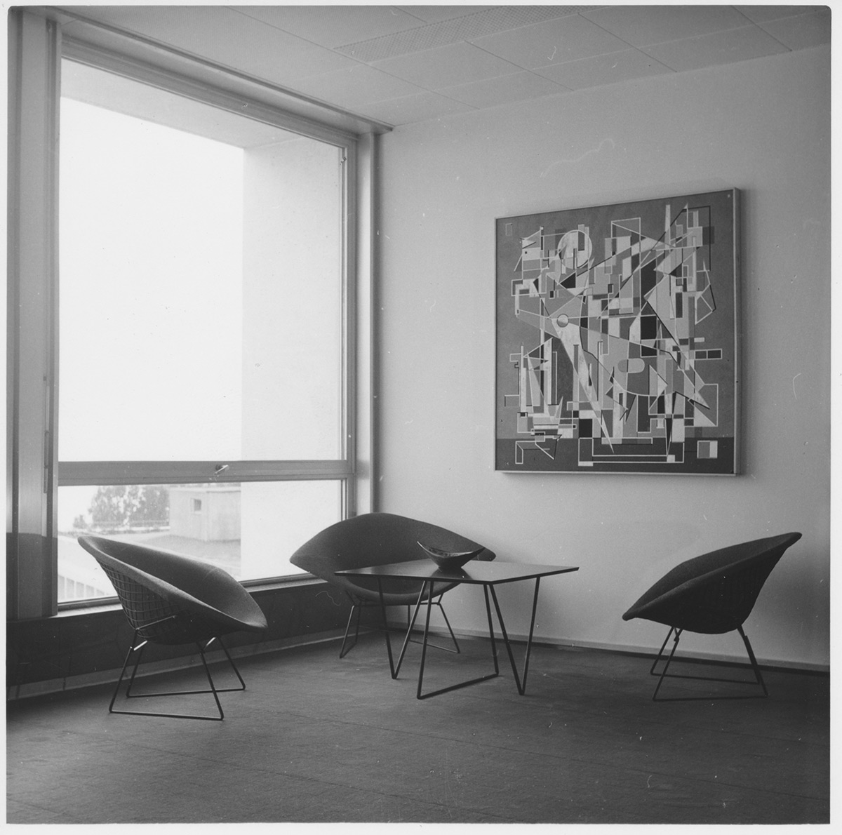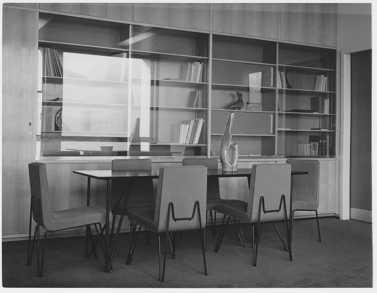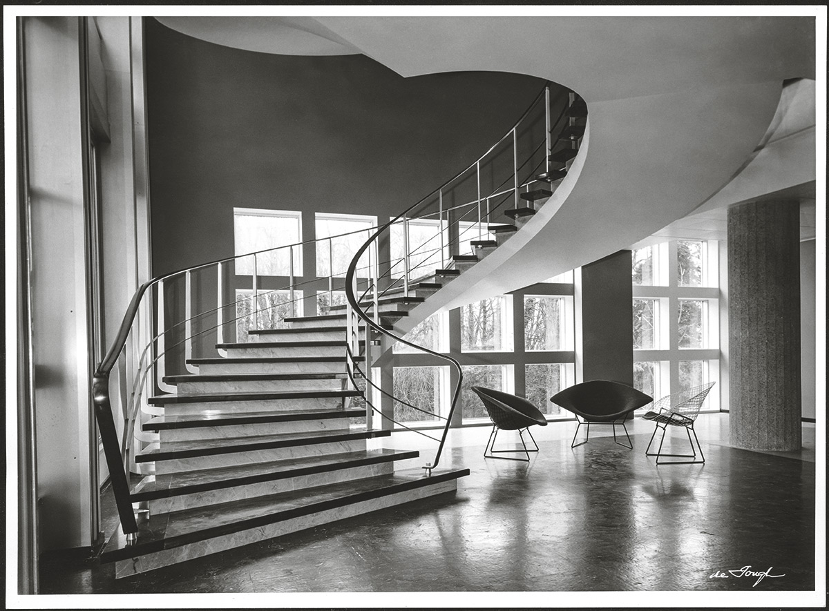 Ce bâtiment située au 41 avenue de Cour à Lausanne, construit en 1956, n'était pas qu’un lieu de travail. C’était un symbole d'une vision moderniste où le mobilier, les couleurs et les œuvres d'art s'entremêlent.