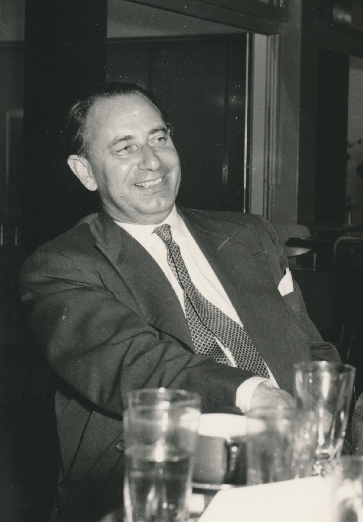 Fils d'ébéniste, Jean Tschumi est né à Genève en 1904. Il a grandi dans un milieu imprégné d'artisanat. Sa curiosité insatiable et son goût pour la beauté le mènent à étudier l'architecture aux Beaux-Arts de Paris. Il s'illustre alors aux côtés de maîtres de l'Art Déco tels qu'Émile Jacques Ruhlmann et Edgar Brandt. Son parcours marquant l'amène à devenir l’architecte des laboratoires de Sandoz, forgeant ainsi un lien durable avec l'industrie pharmaceutique.