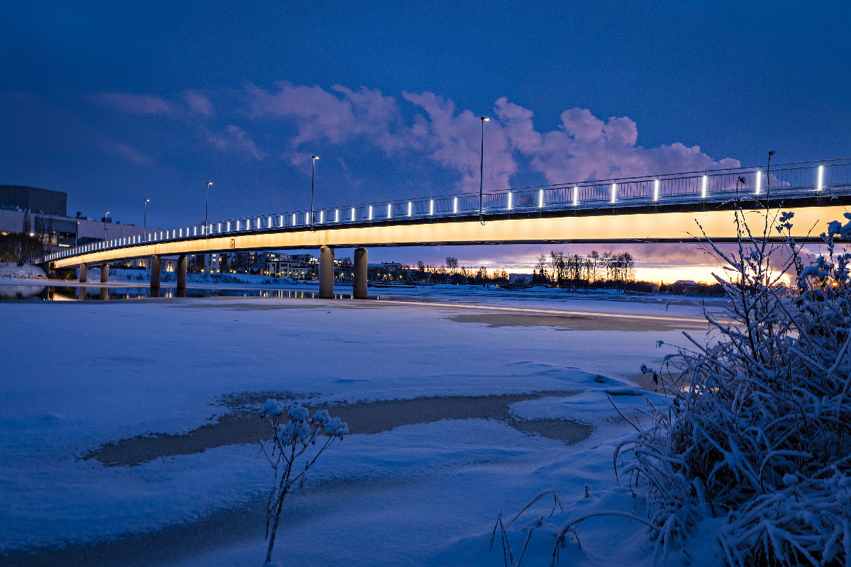 - Lumière nordique des ponts Pikisaari à Oulu, Finlande