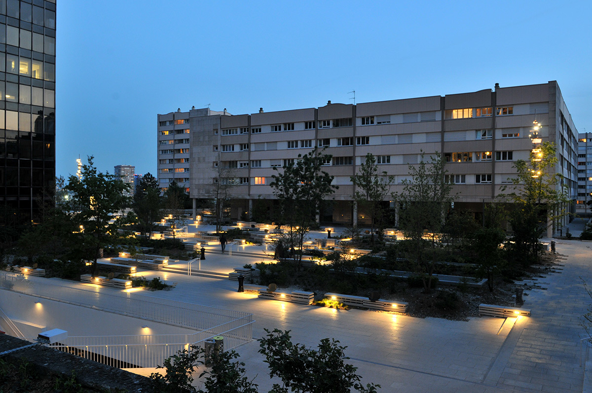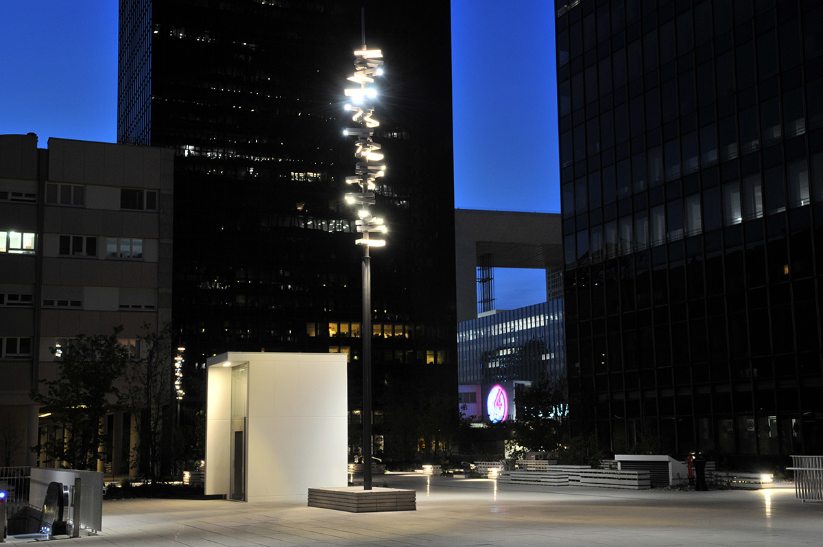 Christine Badinier : Sur le projet inspirant des Terrasses Boieldieu à Paris La Défense, j’ai collaboré avec Empreinte, une agence de paysage lilloise. Luca Olivreau a conçu les bancs en béton comme des étages de bureaux. De mon côté, j’ai dessiné les mâts d’éclairage sur lesquels j’ai empilé des luminaires. Ce fut un défi technique important, notamment dans l’intégration de l’éclairage dans les bancs, idée de Laurent que j’ai mise en œuvre avec succès.