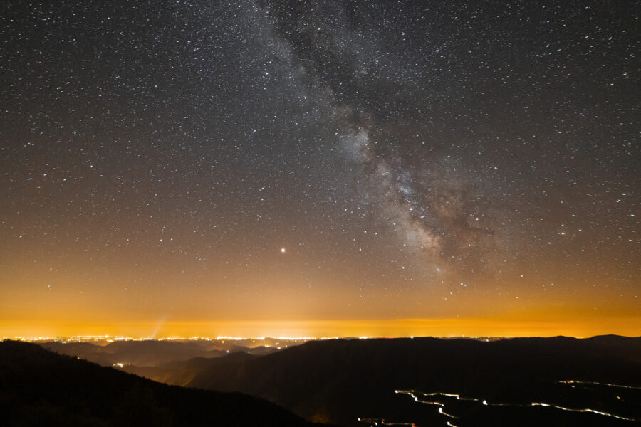 Photo en tête de l’article : Pollution lumineuse du littoral languedocien, vue depuis les Cévennes – Photo © C. Dubray