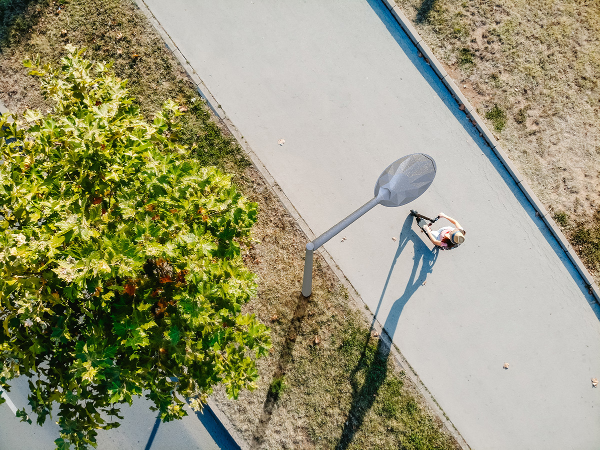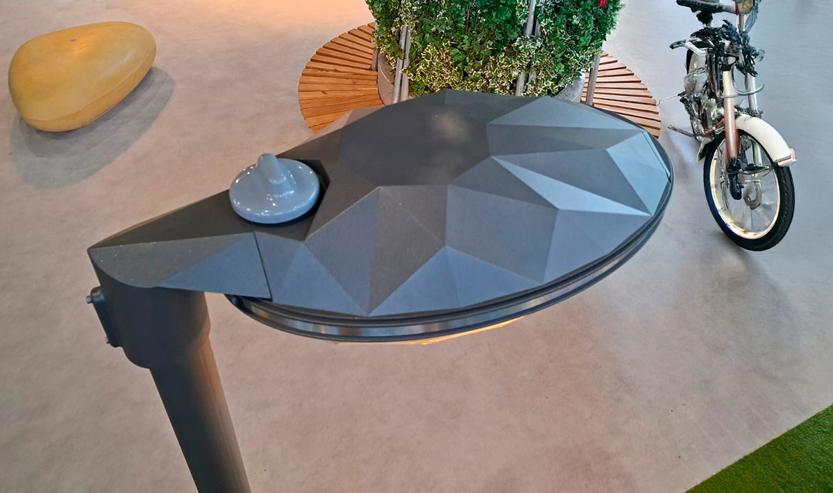 Julien Schnell : Souvent disgracieusement ajouté sur les lanternes, le Wizard est un point essentiel. Il joue un rôle technique de communication pour le pilotage de l’éclairage public. Pour qu’il puisse émettre des ondes, il fallait le dissimuler sans le cloisonner. C’est pourquoi j’ai imaginé un repli des facettes pour l’intégrer harmonieusement.