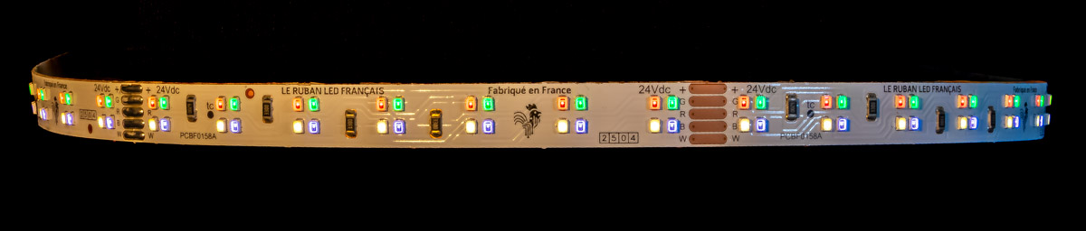Laurent Guillon : C’est un RGB White, mais contrairement aux modèles asiatiques, souvent sur des PCB de 12 mm qui ne rentrent pas partout, le nôtre fait 10 mm de large. Plutôt que d’avoir une LED avec quatre puces, où le bleu n’est jamais pur à cause de la LED blanche, nous avons mis quatre puces séparées : rouge, vert, bleu et blanc.
