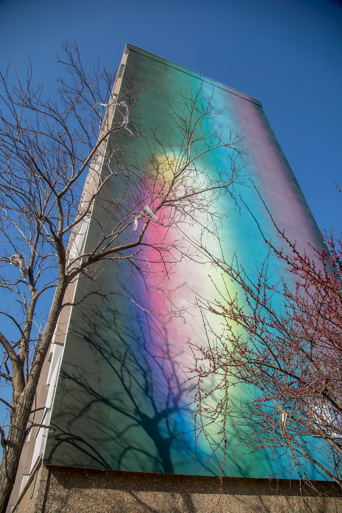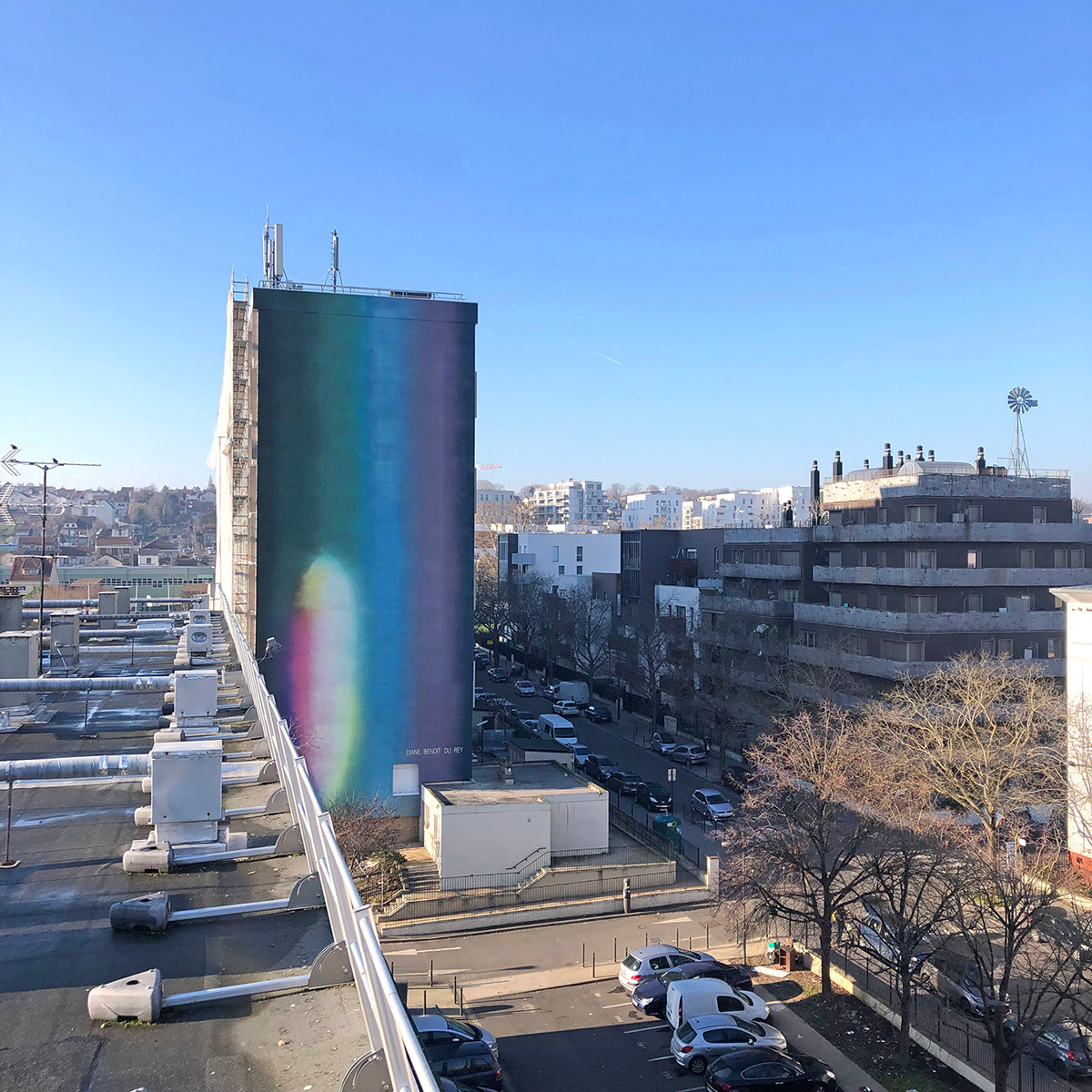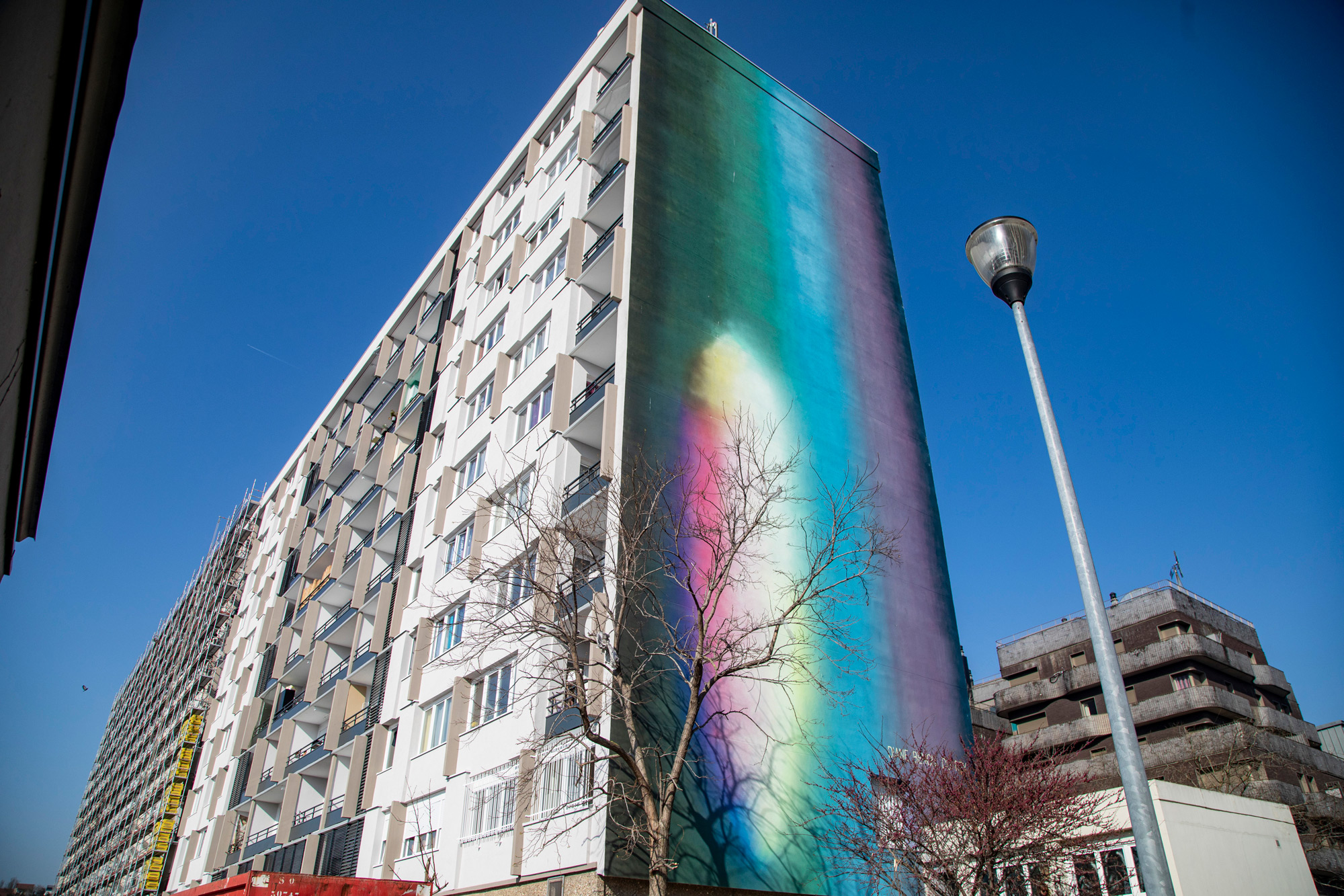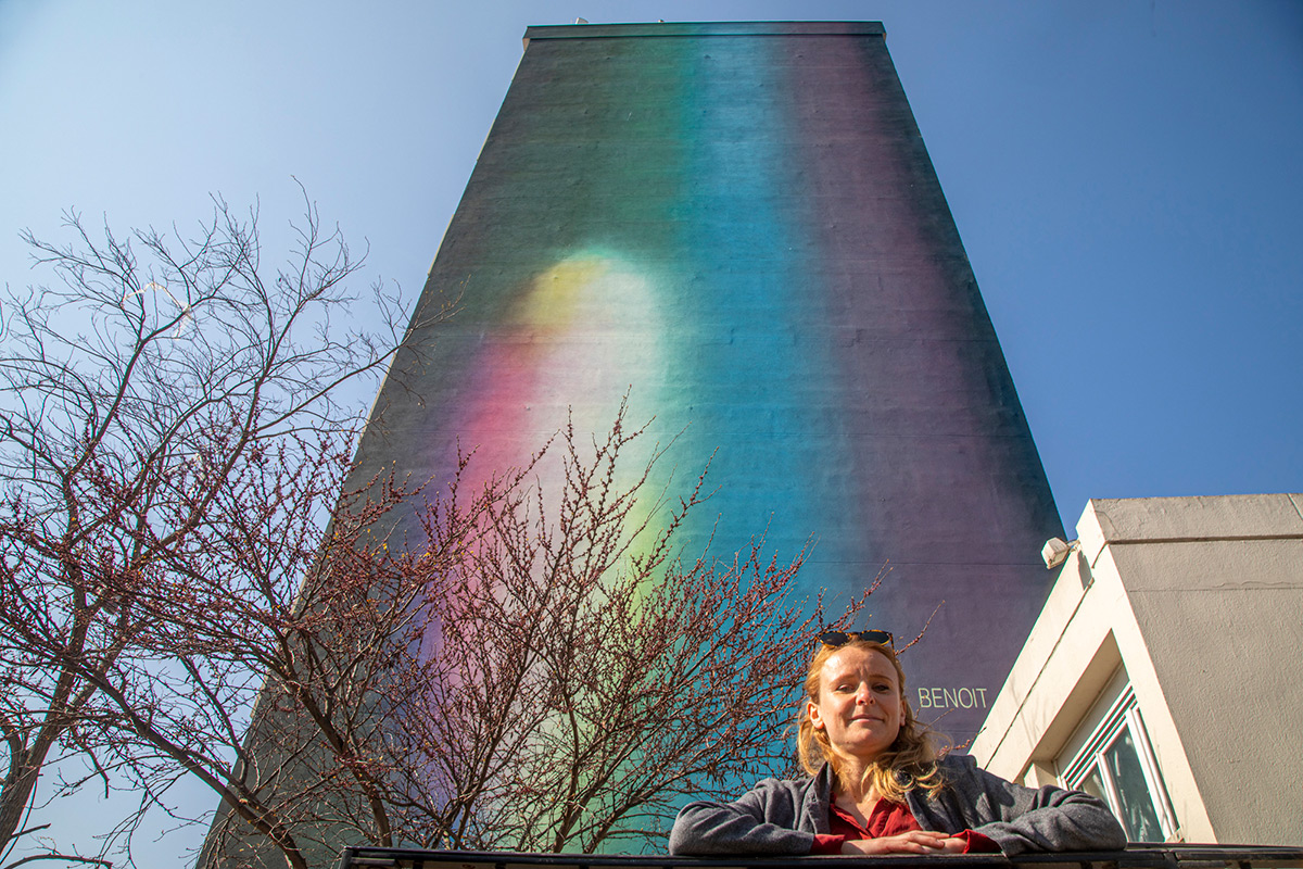 Dédié au pignon du mur Est de l’immeuble, le projet de l’artiste a été choisi par les habitants du quartier à l’occasion d’une consultation citoyenne.