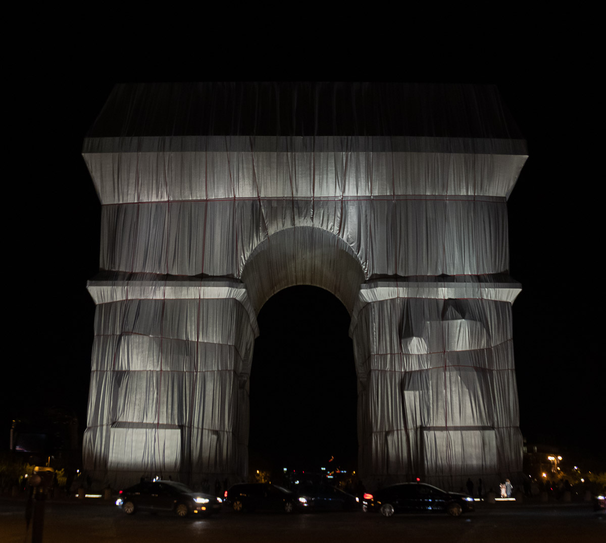 Pour un éclairagiste, l’illumination nocturne de l’Arc de Triomphe à Paris pose question. En effet, pour l’emballage de Christo, aucune mise en lumière n’a été prévue par l’artiste.
