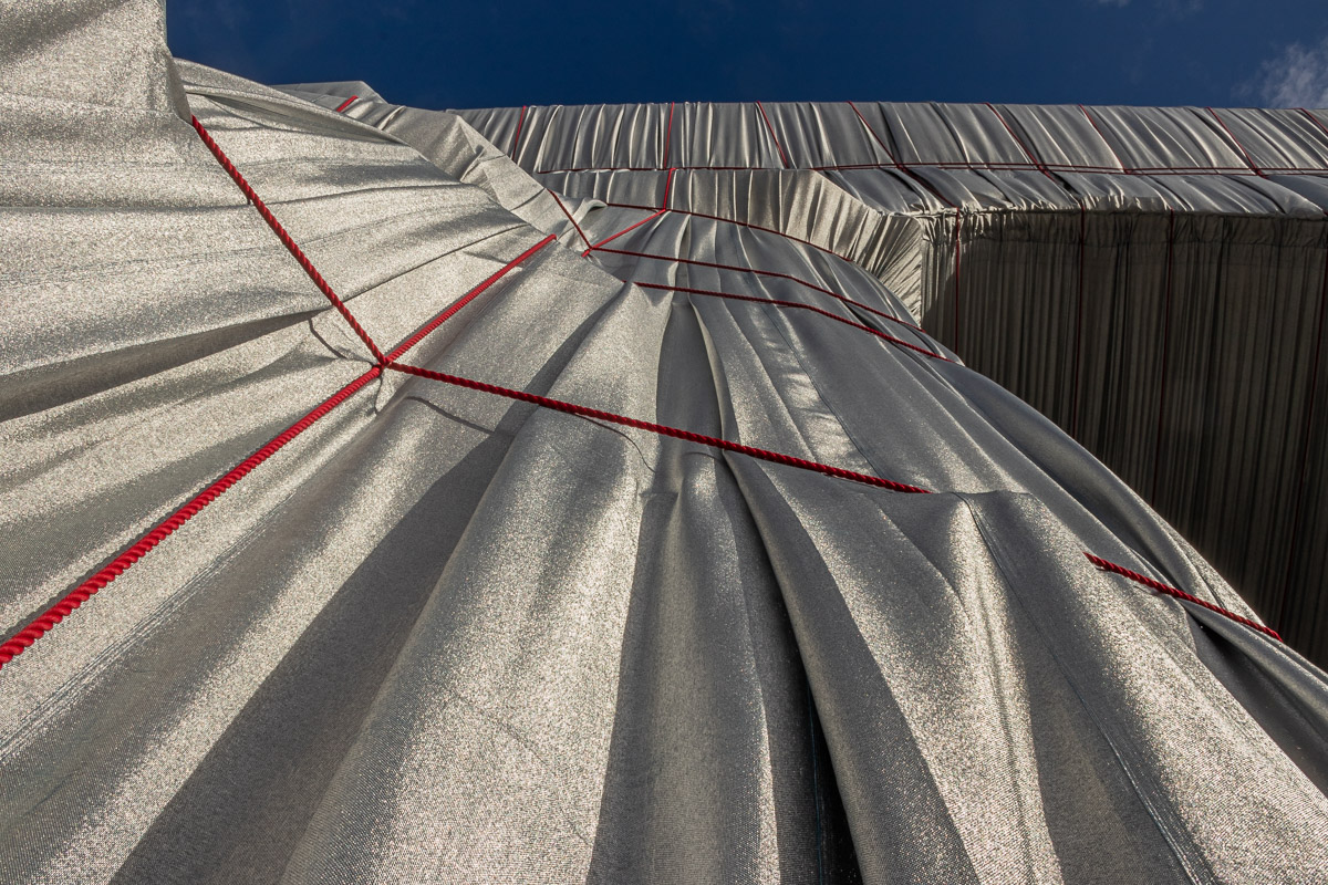 Réalisé avec du tissu recyclable en polypropylène argent bleuté, où Christo a vaporisé de l’aluminium sur une face, le prix de l’œuvre est important.