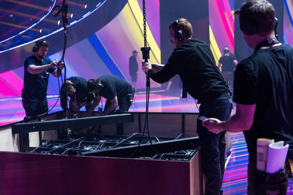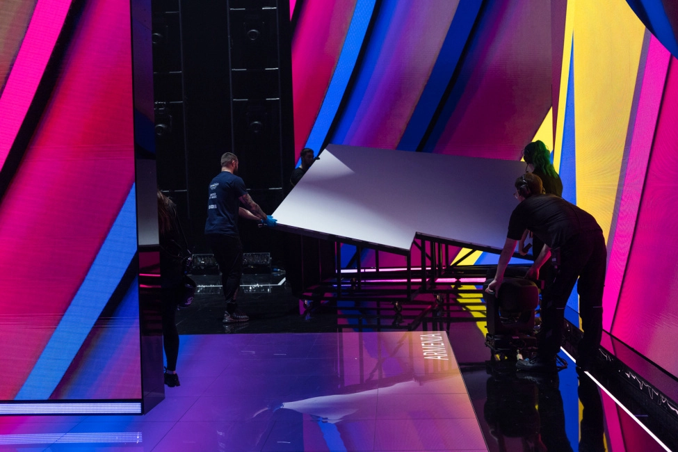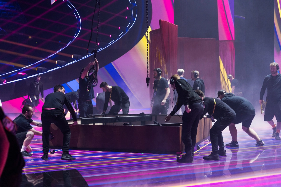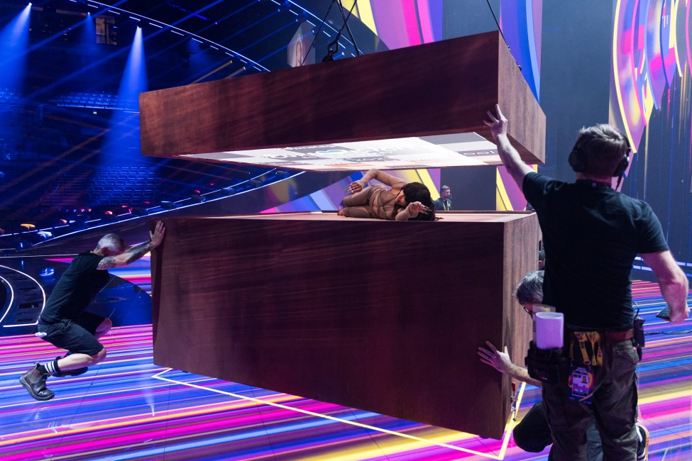 Eurovision 2023 – Sweden, Behind the scenes – rehearsal of Eurovision 2023, Liverpool – light box installation 2 © Corinne Cumming, EBU