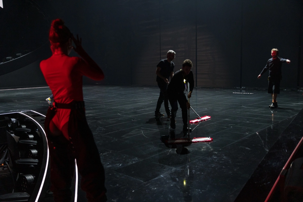 Eurovision 2023 – Behind the scenes at the rehearsal for the Grand Final of Eurovision 2023 in Liverpool – cleaning the stage © Corinne Cumming, EBU