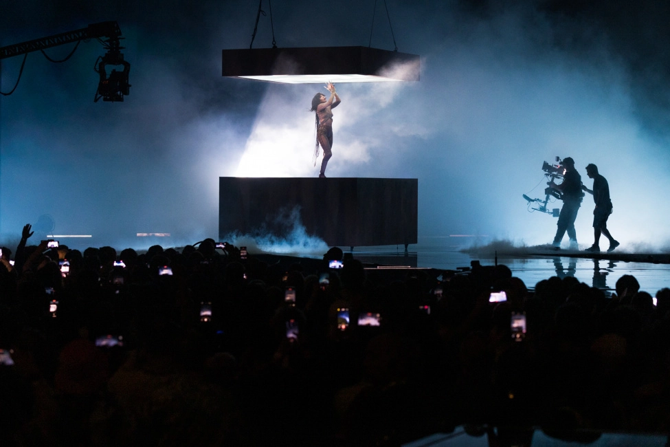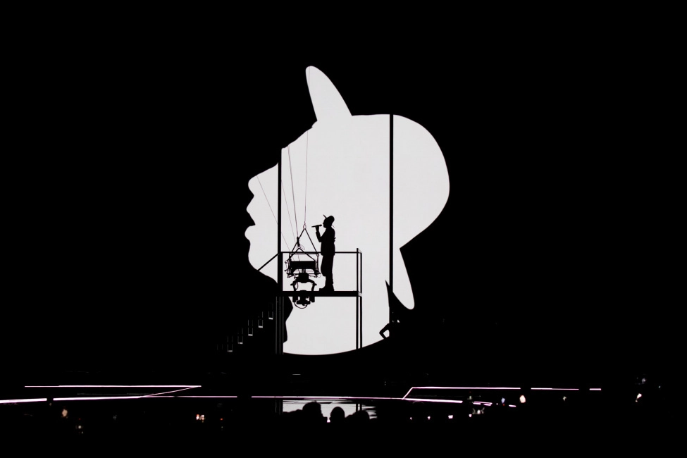 « La boîte à lumière est de retour. Elle est surélevée du sol, de sorte que la section inférieure peut être roulée sur la scène. L’écran LED est une mer de fumée tourbillonnante. L’effet global est incroyablement intense. »