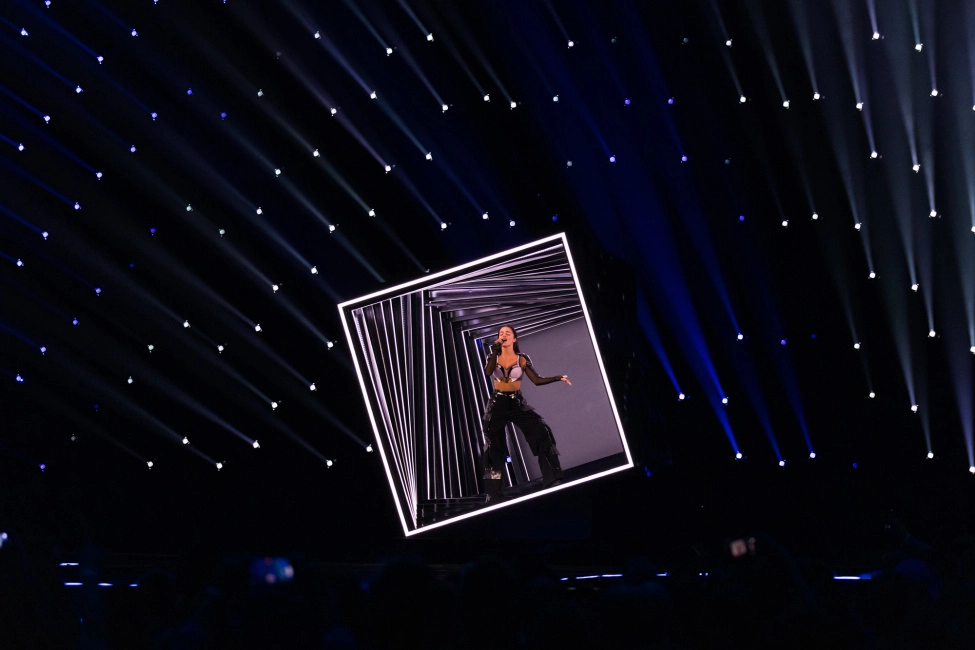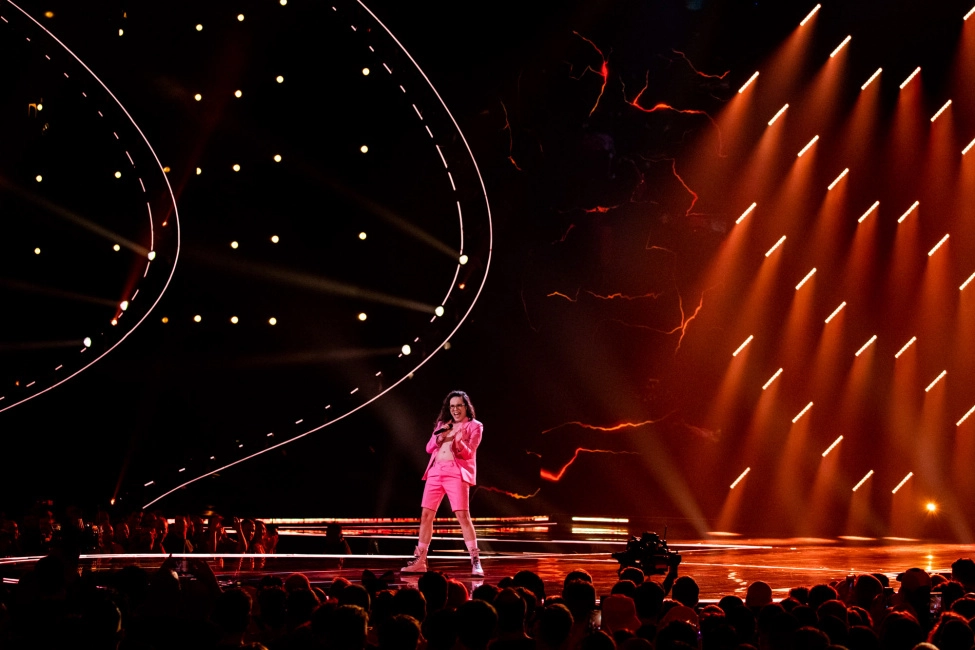 Eurovision 2023 – France, La Zarra, Évidemment – First Semi-Final – beamers © Sarah Louise Bennett, EBU