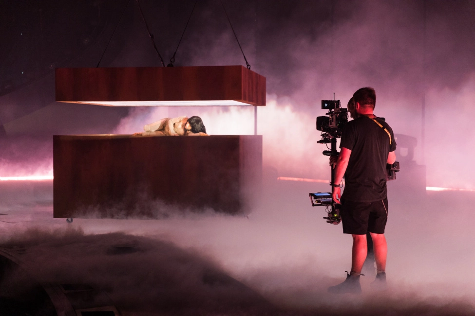Tim Routledge : « Autour de la scène ovale, qui est effectivement ronde, je voulais un moyen de créer de nouvelles architectures d’éclairage au sol. J’ai donc conçu 22 colonnes de levage dans la passerelle d’éclairage. Ils peuvent monter et descendre les Robe Spiders sur le bord de la scène. »