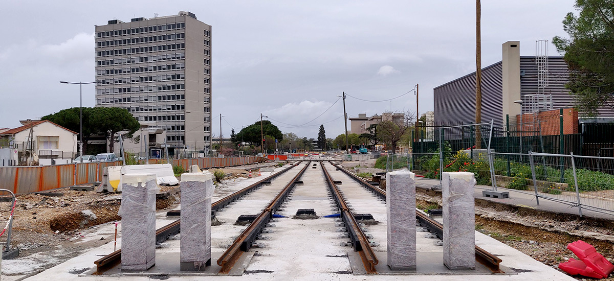 - Au sud: 4,4 km de prolongement du tram relieront la place Castellane à La Gaye. Cette extension permettra la desserte d’équipements structurants, dont le stade Vélodrome et les hôpitaux sud. Cet itinéraire était déjà bien avancé avec certaines sections de la ligne presque terminées lors de notre reportage.