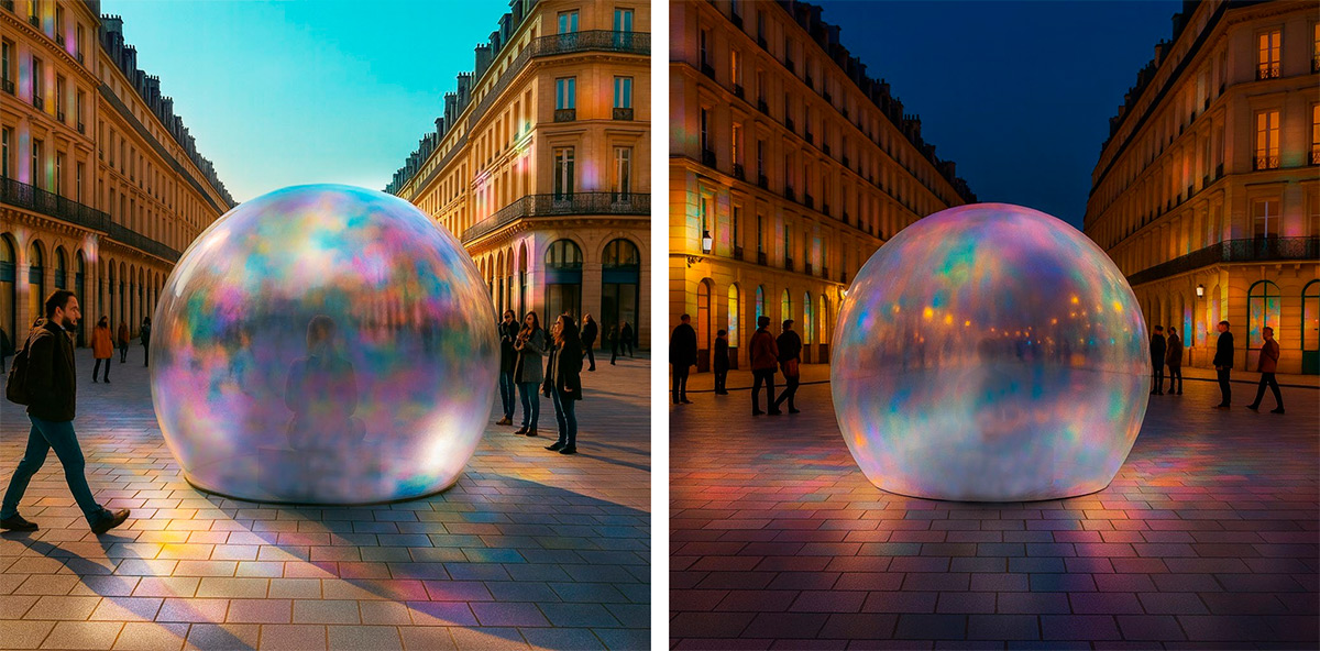 « Le jour, elle sème des reflets solaires ; la nuit, elle diffuse une lueur douce, respectueuse de l’environnement ».