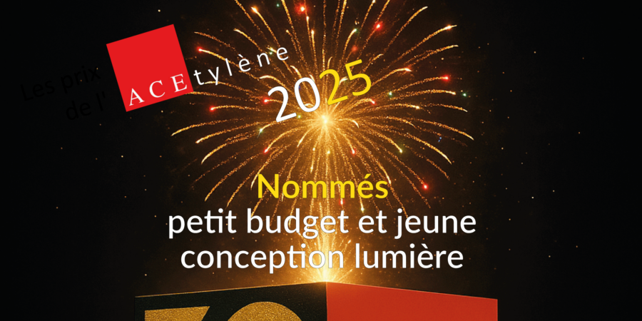 L’Association des Concepteurs Lumière et Éclairagistes se réjouit d’annoncer la 14ème édition des « Prix de l’ACEtylène 2024 ». En collaboration avec LZL Services et le portail Light ZOOM Lumière, l’ACE a le plaisir de dévoiler, en avant-première, les nominés. Cet article se concentre sur le « Prix de la conception lumière petit budget » ainsi que le « Prix de la jeune conception lumière ». Chacun est impatient de découvrir les projets qui seront mise en avant lors de cette célébration annuelle des 30 ans de l’ACE.