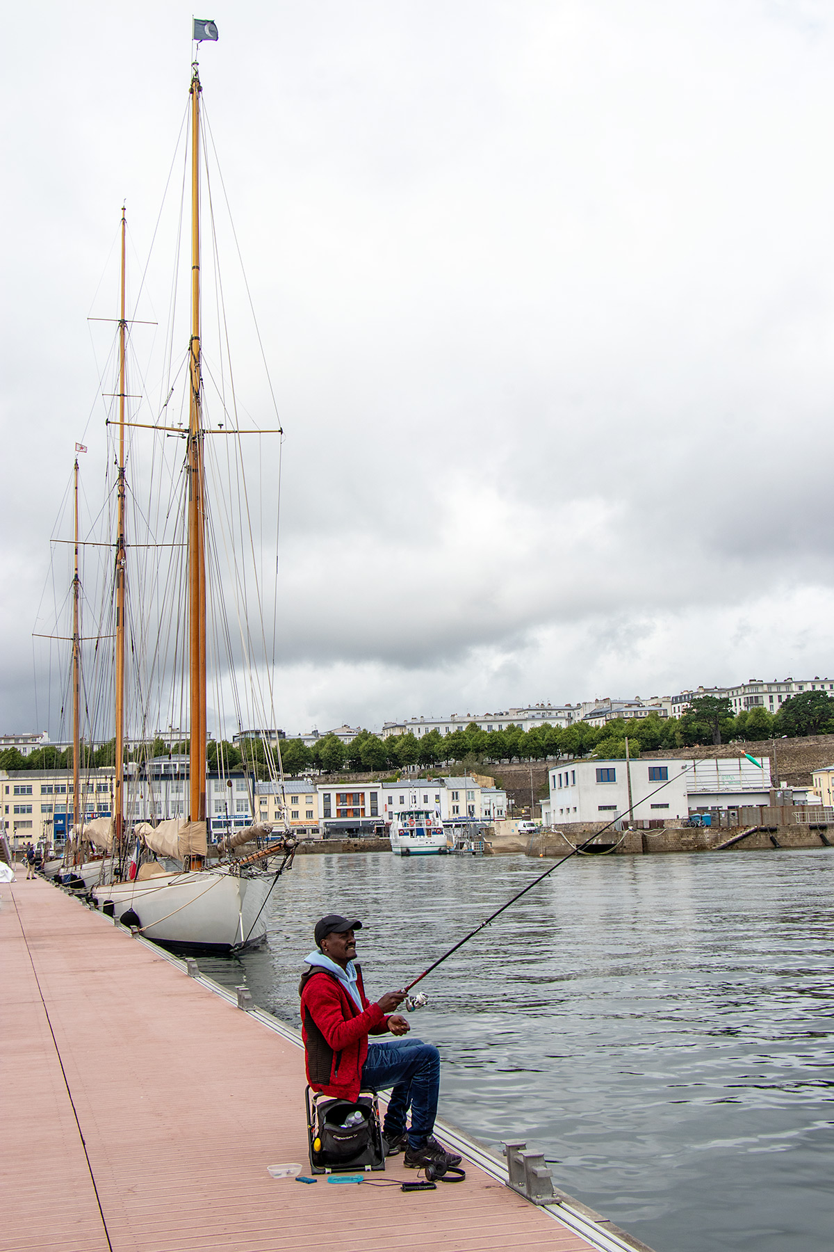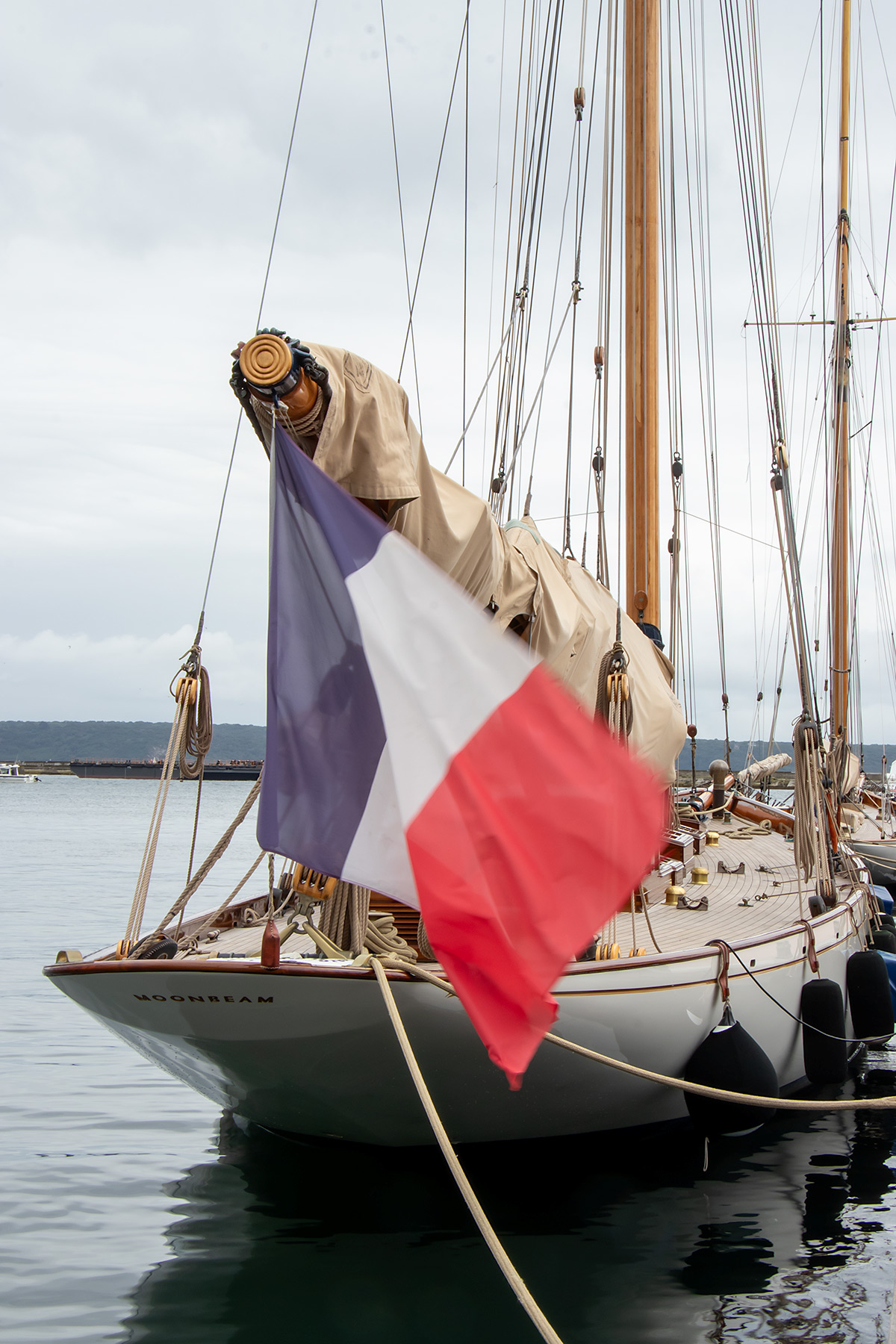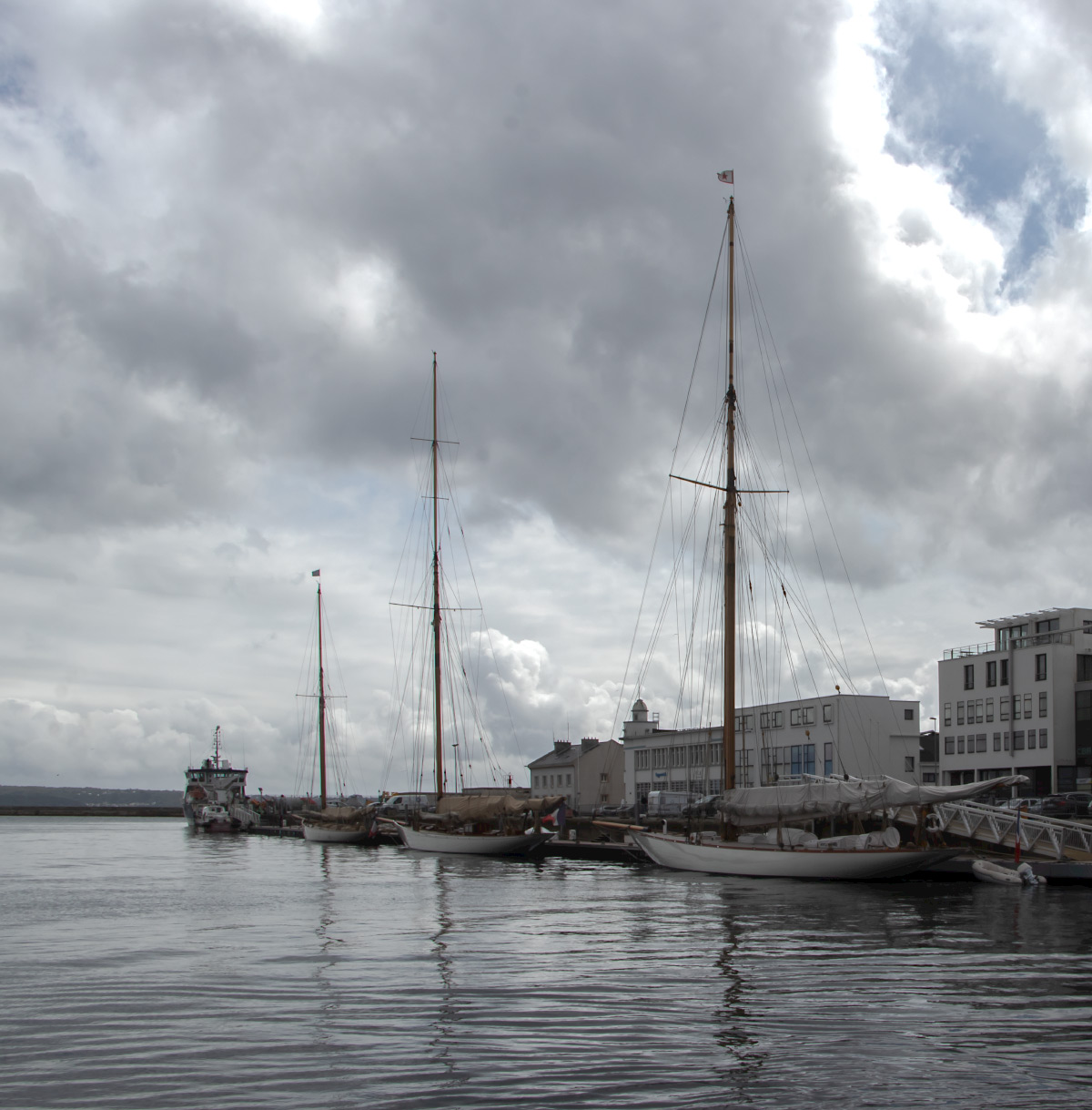 Brest comme port d’attache en Bretagne. Trois voiliers centenaires et légendaires de l’architecte naval écossais William Fife III sont au quai du Commandant Malbert. Du ponton à flot d’accostage, à pied, j’admire alors le :