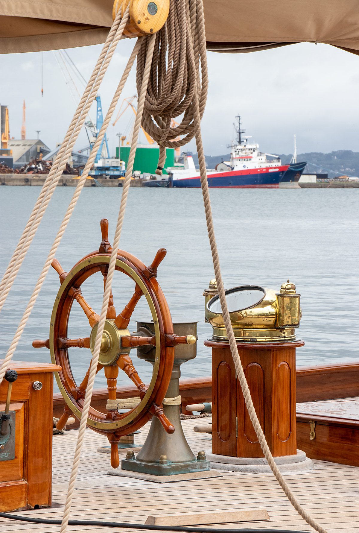 Observez le design de la coque, du pont en bois et de la barre de navigation. Et si vous avez de la chance, découvrez ces navires toutes voiles ouvertes lors d’une course en mer.