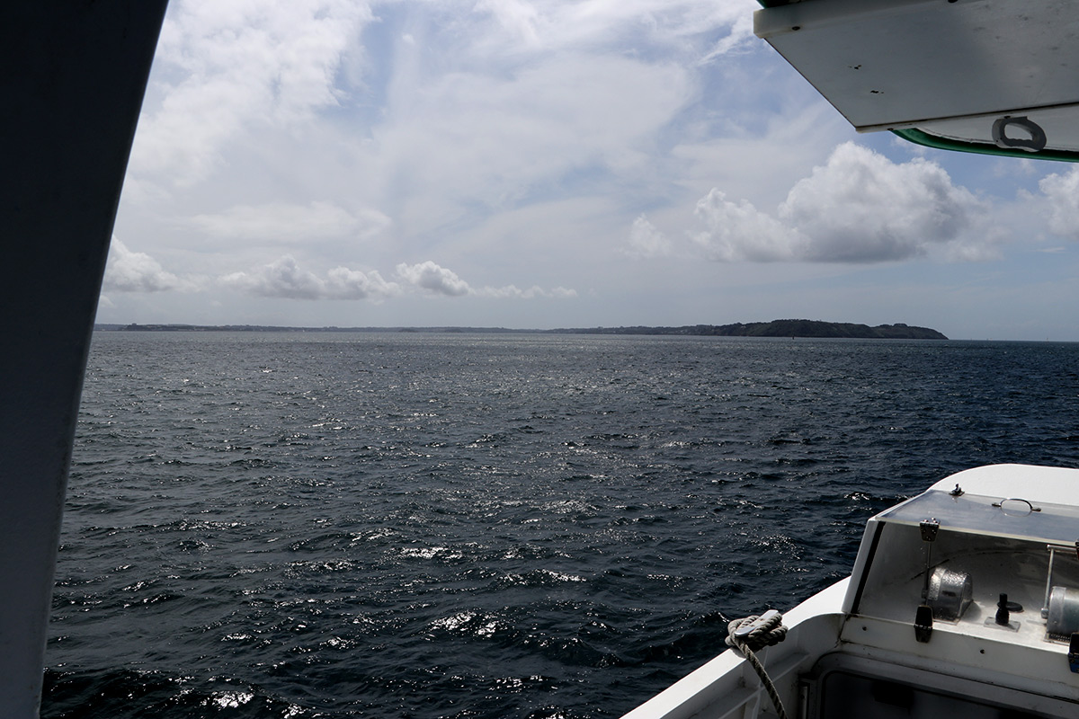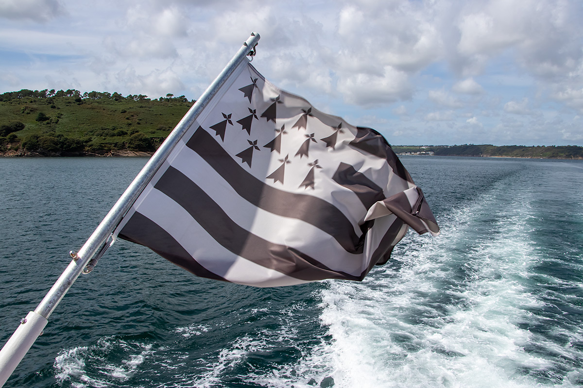 La balade se poursuit à bord d’une vedette monocoque en aluminium de couleur marine. Ce bateau à fond plat du Lebrestoa de Brest Ouest Compagnie maritime effectue des promenades en mer. Escapade pour les touristes de passage, mais aussi bouffée d’air saint !
