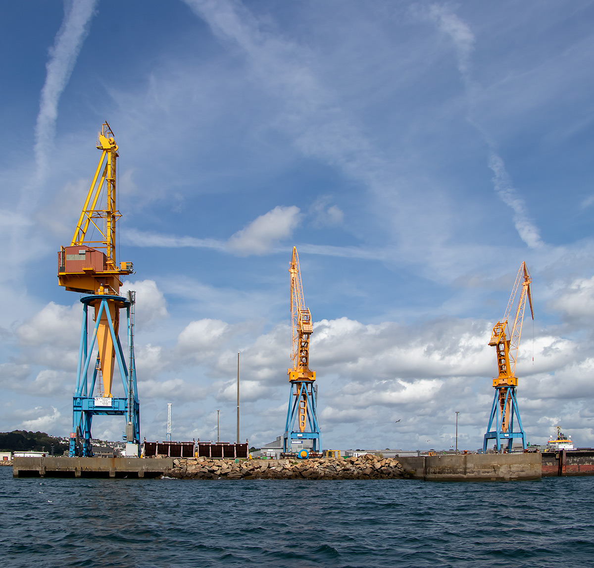 À quai, les grues portuaires à portique sur rail rivalisent de formes. Chacune a une flèche et une tourelle bien spécifiques. Certaines sont même classées monuments historiques !