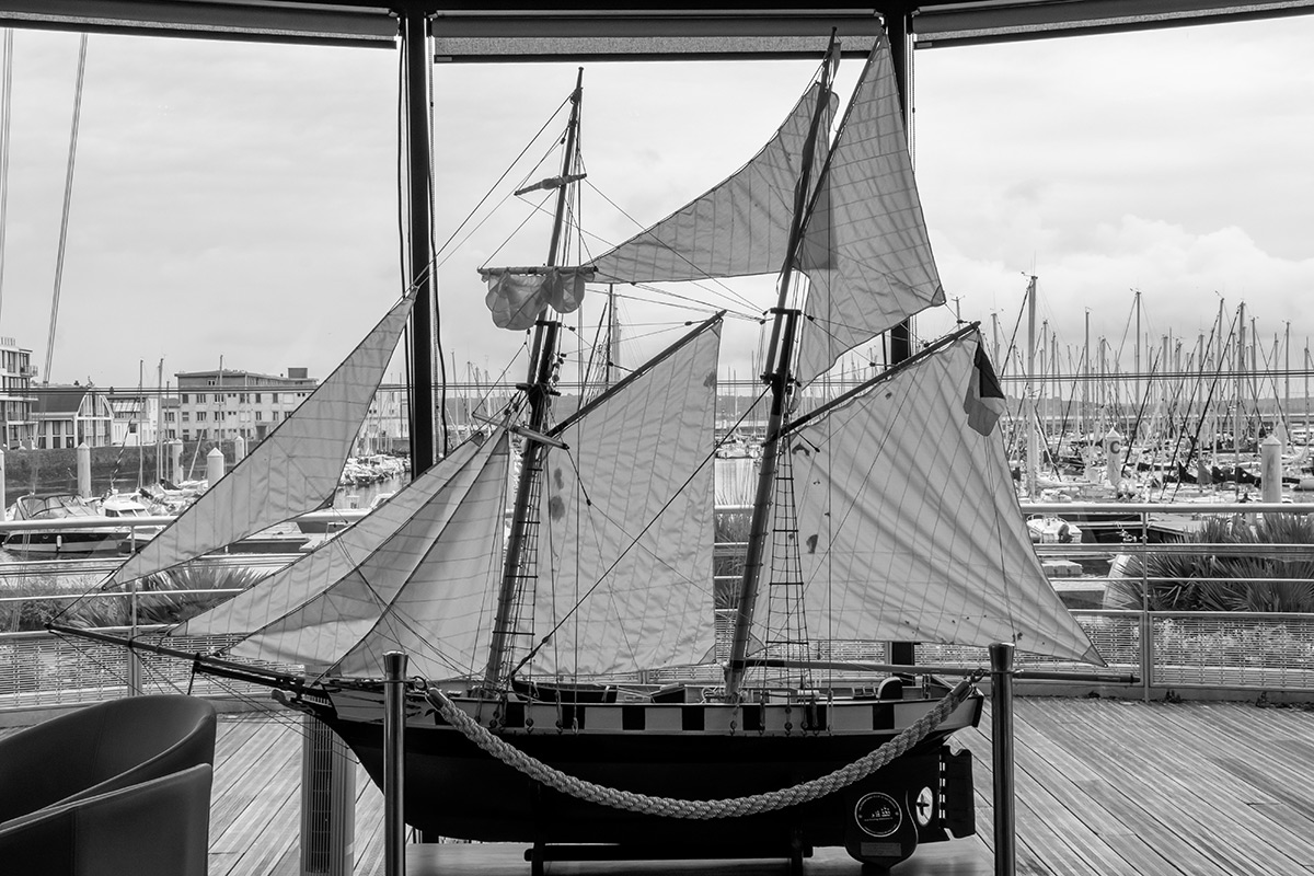 Mon voyage s’achève dans l’espace d’accueil du bureau du port. Une superbe maquette de goélette prend place. Vive les bateaux à voiles, deux, trois ou cinq mâts !