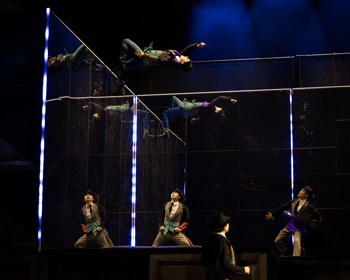 Langues : Le spectacle n’a pas de dialogues parlés. Il privilégie l’universalité du langage corporel, visuel et musical.