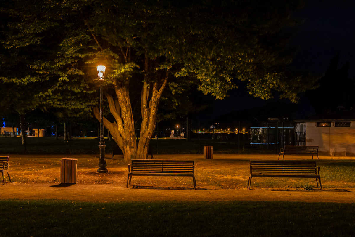 Dernier volet de ce tour d’horizon de mon reportage photo, le parc Charles-Bosson. Il affiche une ambition forte : transformer un éclairage public de jardin surdimensionné en un écrin de sobriété et de performance énergétique. En effet, l’hôtel quatre étoiles Impérial Palace était richement doté d’anciens luminaires à ballons fluorescents : 211 points lumineux, pour 28 246 W au total !
