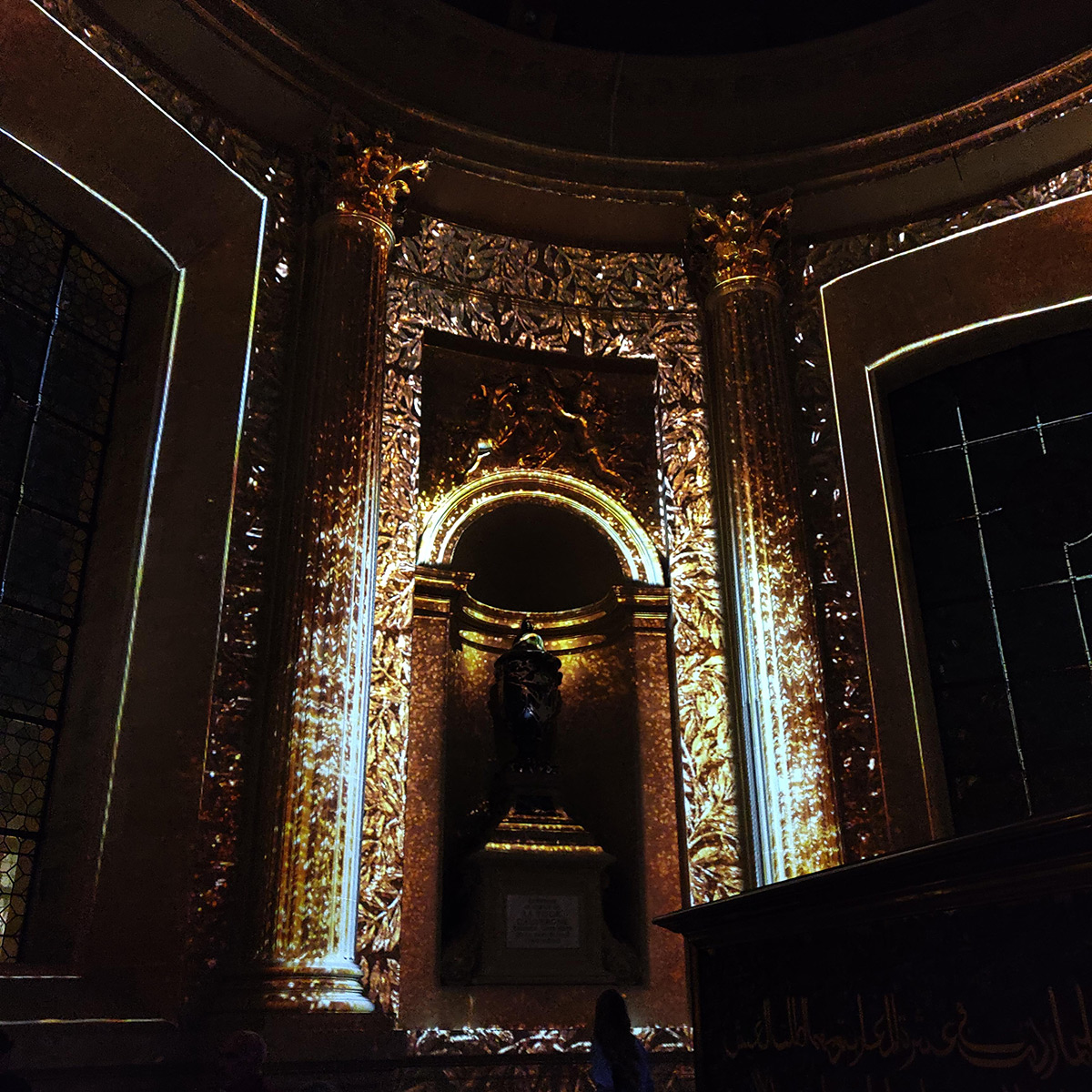 Dans le spectacle immersif, un moment de respiration constitue la visite des six chapelles disposées autour de l’église centrale pendant environ 10 minutes.