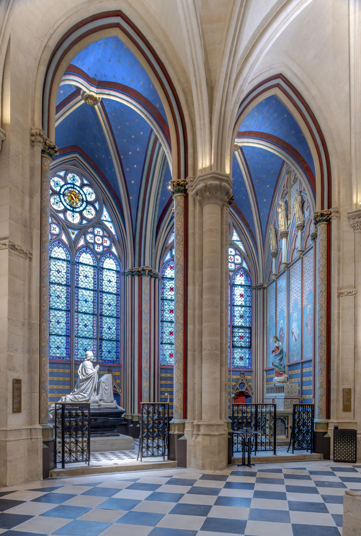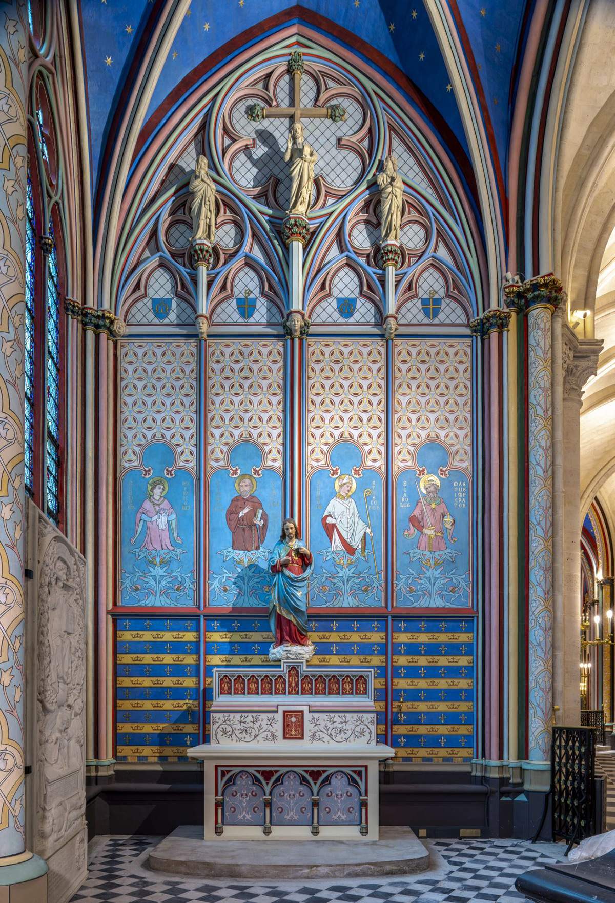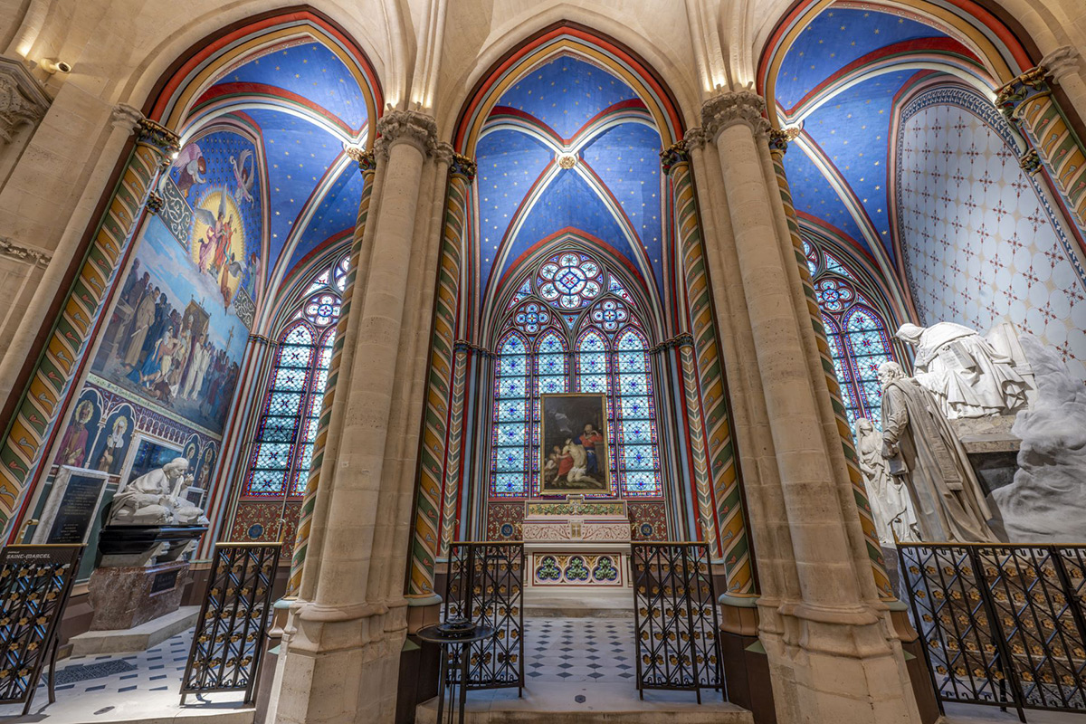 Les chapelles autour du chœur ont été dessinées et ornées par l’architecte Eugène Viollet-le-Duc entre 1843 à 1864. La restauration des peintures murales et des sculptures de la cathédrale Notre-Dame de Paris a commencé en 2022. Elle révèle à nouveau leurs couleurs vives grâce aux restaurateurs spécialisés.