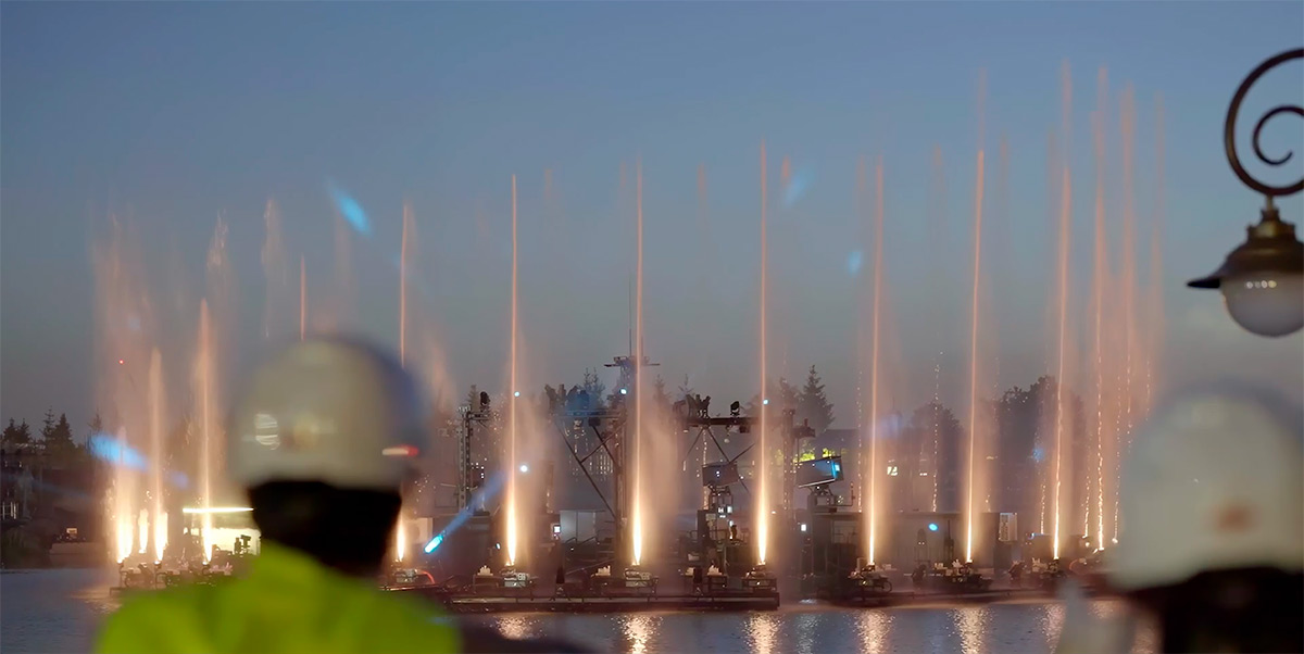 A travers la même architecture de ce spectacle synchronisée, les fontaines sont également programmées. Selon leur pression, elles peuvent être ajustée en temps réel, ce qui modifie la hauteur des jets d’eau. Avec un rythme dynamique, le résultat soutient la musique et aide à guider le regard du public.