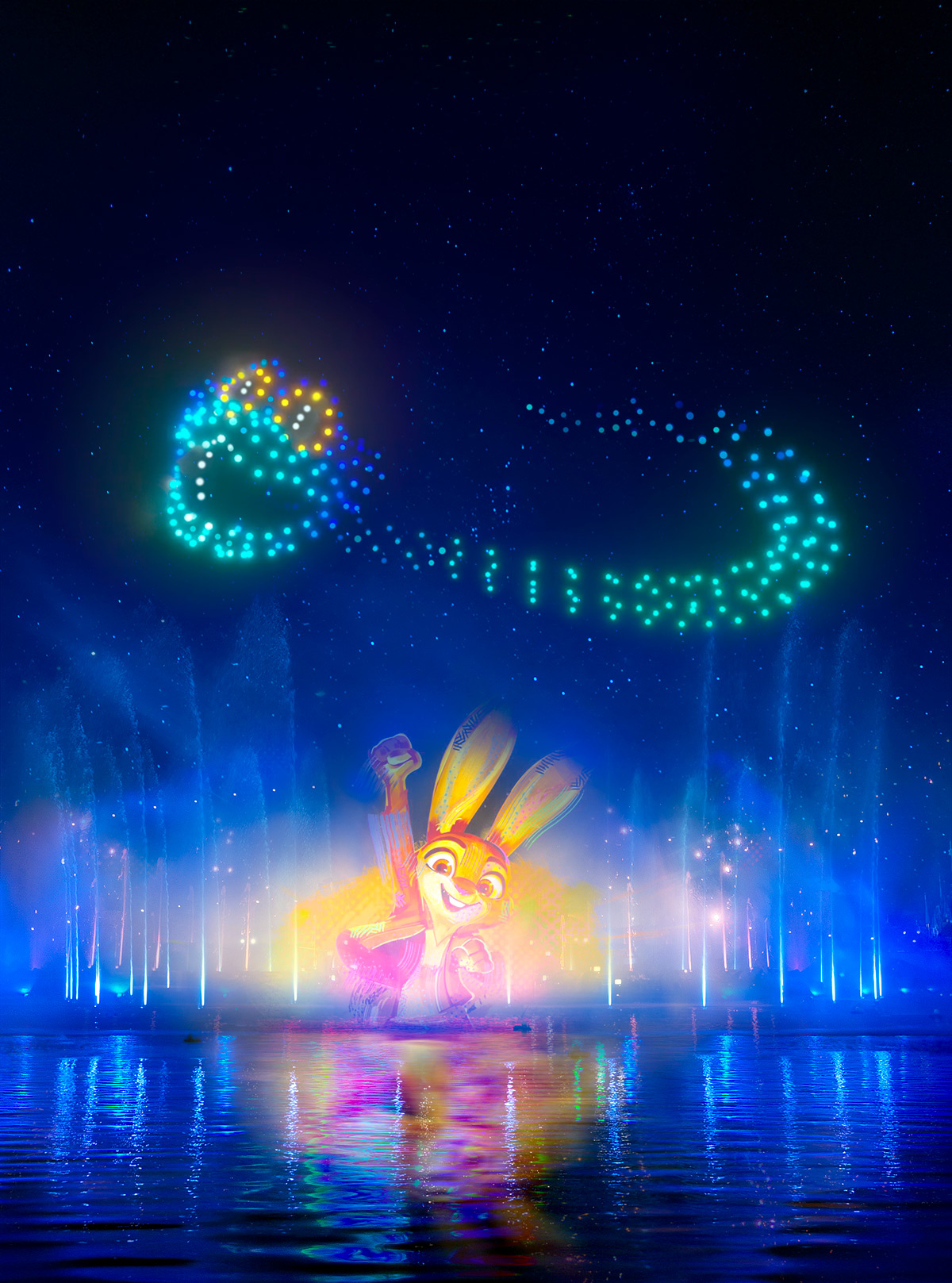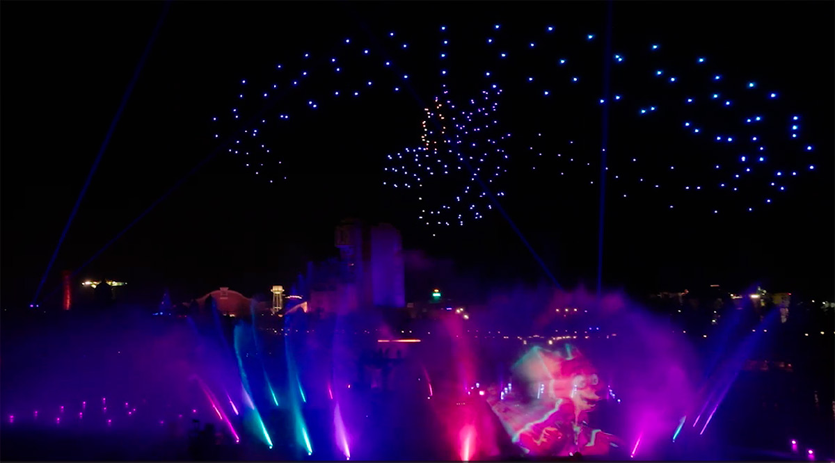 Les drones aquatiques sont la nouveauté. Ils se déplacent juste sur l’eau et créent des reflets, des lignes et des formes. Ces effets lumineux à basse altitude paraissent intimes et inhabituels. Pour Disney, l’eau agit comme un miroir et multiplie les sources lumineuses.