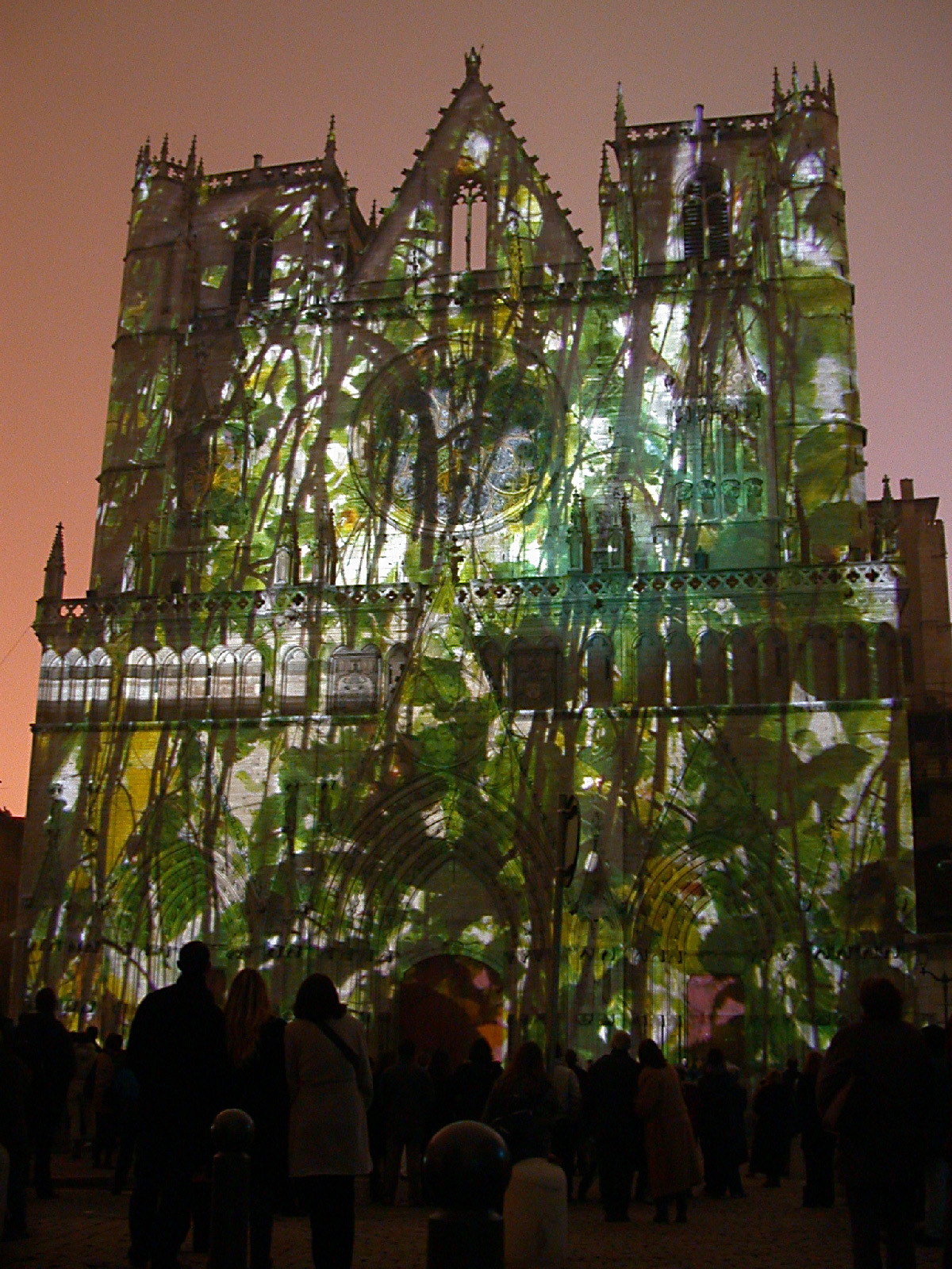 « Sur la façade de la cathédrale, un monde végétal s’enlace au décor architectural. Jardin paradisiaque puis univers inquiétant, de ce décor surgissent les ombres animées d’un bestiaire en plusieurs tableaux. À l’aide des lunettes de vision stéréoscopique distribuées à l’entrée de la place vous pourrez voir ce décor lumineux s’incruster dans la façade et les animaux s’avancer dans l’espace. Avec toute la magie de l’image en relief à l’échelle du monument ».