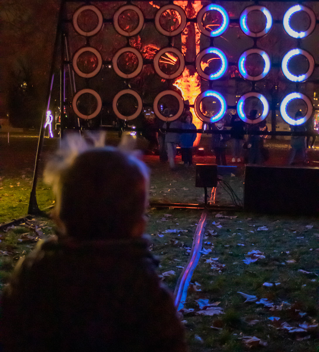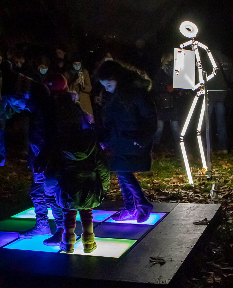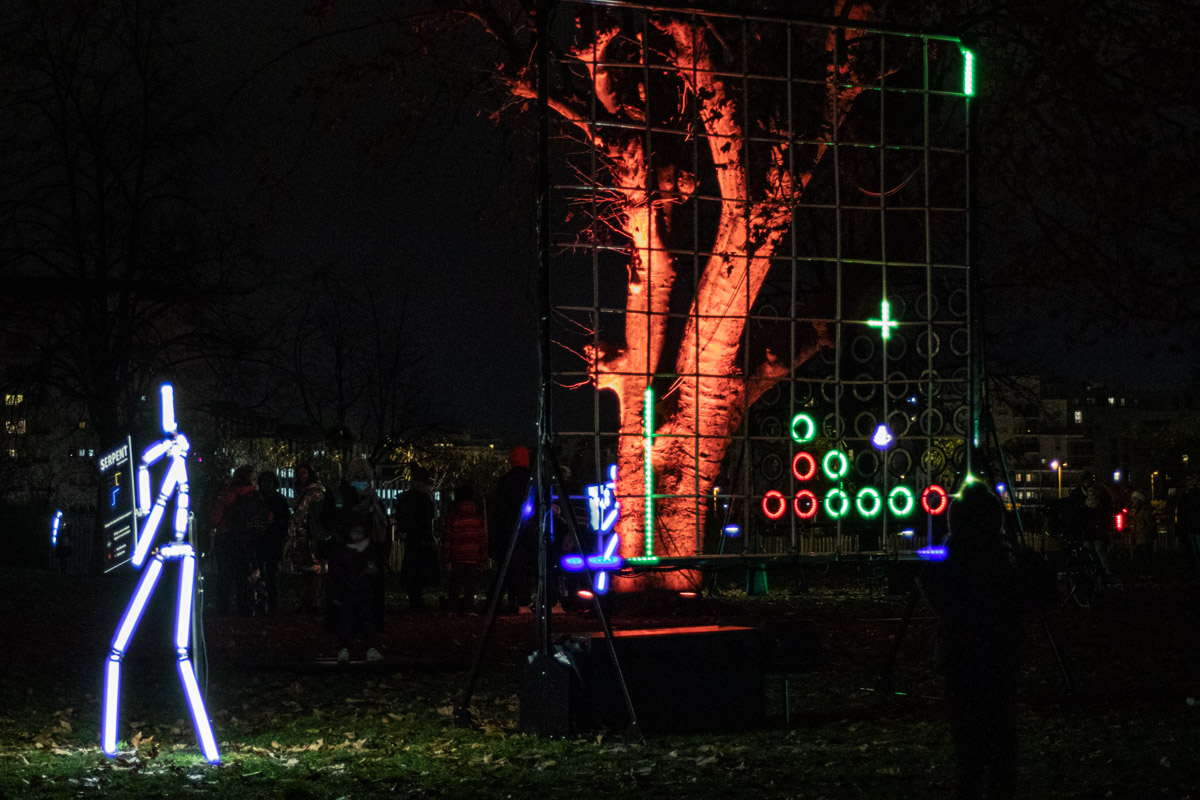 Dans une partie du parc Blandan du 7e arrondissement de Lyon, la lumière est utilisée sous forme de jeux interactifs.