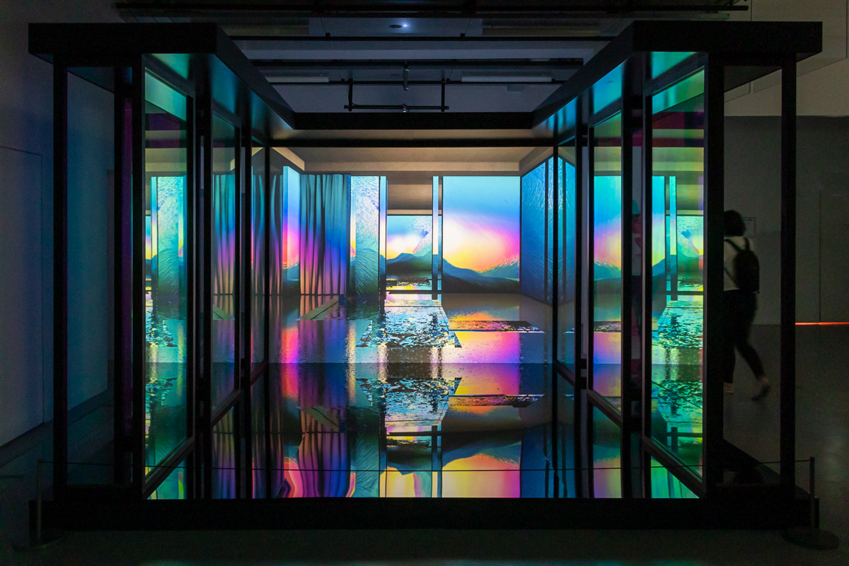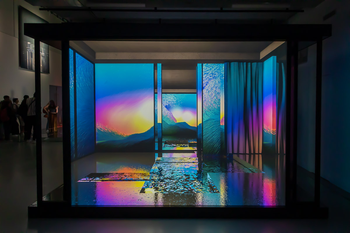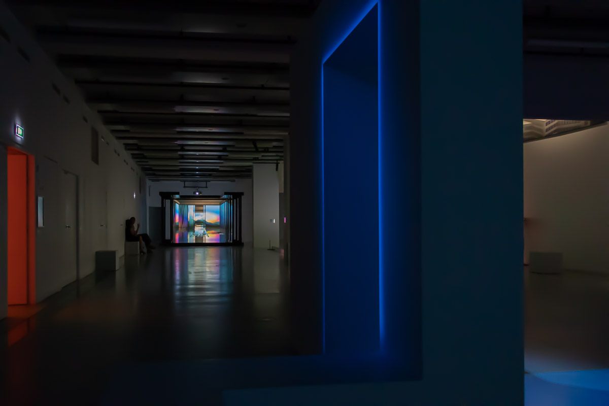 L’effet lumière ne se limite pas aux écrans eux-mêmes. Il se démultiplie en espace tridimensionnel. En fonction du point de vue du visiteur, la perception de l’œuvre évolue.