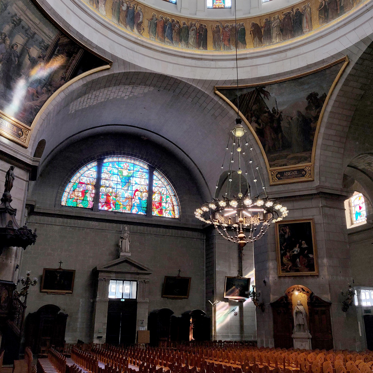 En début de soirée, de mi-novembre 2024 à fin mars 2025, le diocèse de Nantes accueille dans cette architecture néoclassique accueille une création numérique in situ Immersia.