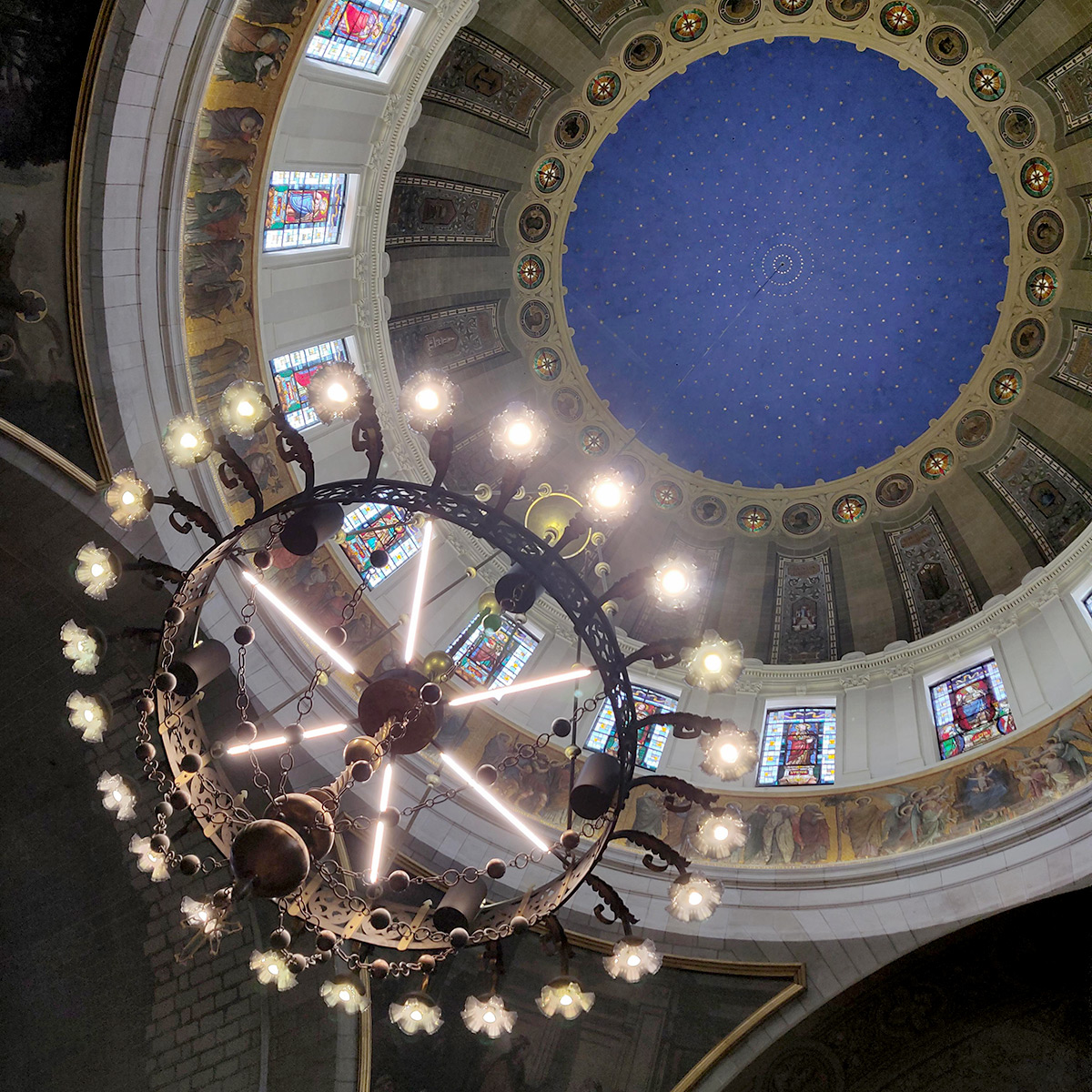 Ainsi, la vision des spectateurs fait face à un pilier, qui s’élargie en deux voûtes vers la superbe coupole au-dessus.
