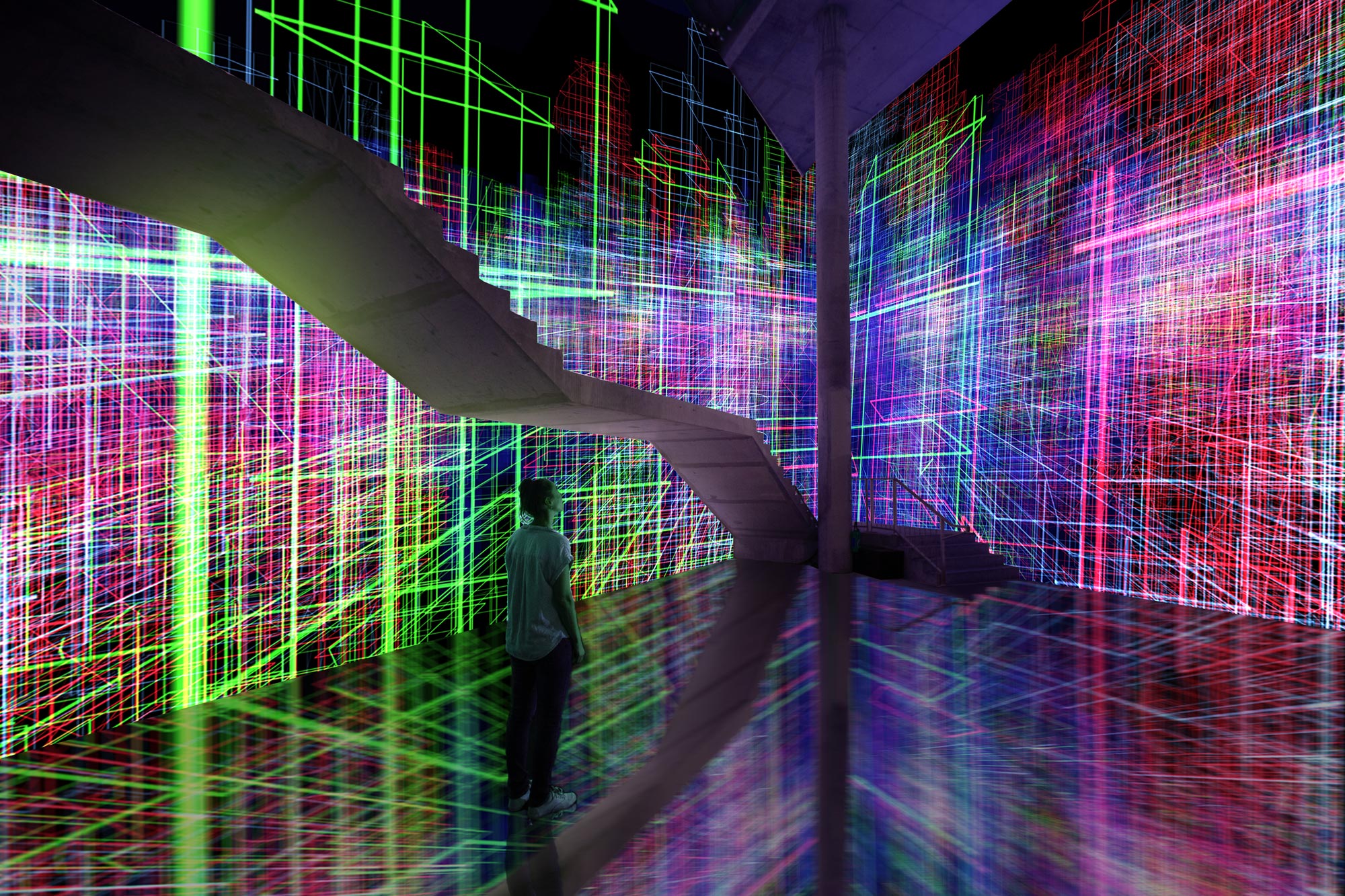 Un univers de lignes, de points, de fractales colorées, de motifs géométriques, d’œuvres interactives. Dans tous les cas, le spectateur est déclencheur, acteur et sujet. Alors, l’œuvre devient une expérience unique et personnelle. On se prend au jeu de l’appropriation ludique, du selfie et de la vidéo.