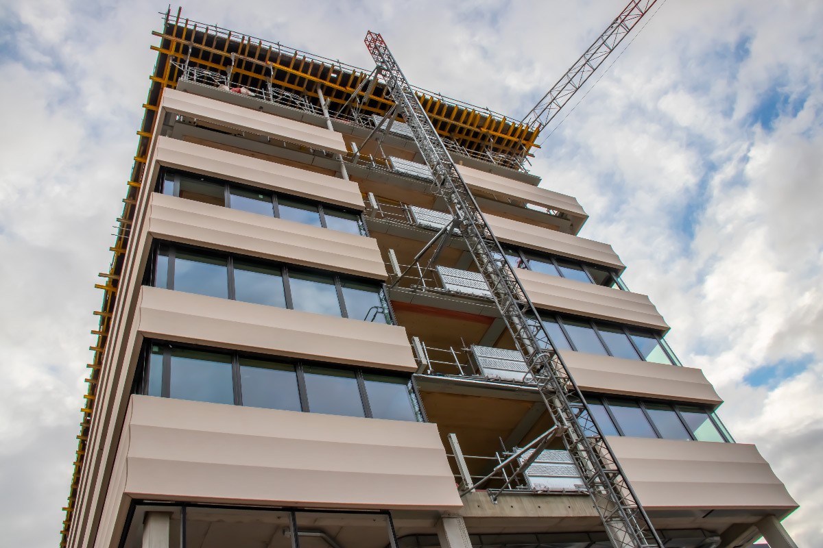 Sur 52 mètres de long et 16 de large, le nouveau bâtiment Lumen de a+ Samuel Delmas est en cours de construction. Reportage photo avec le Groupe Cardinal.