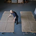 En remplissant la galerie d’art d’une structure suspendue qui dialogue avec l’architecture intérieure sombre, l’installation est pensée pour occuper l’espace de manière immersive.