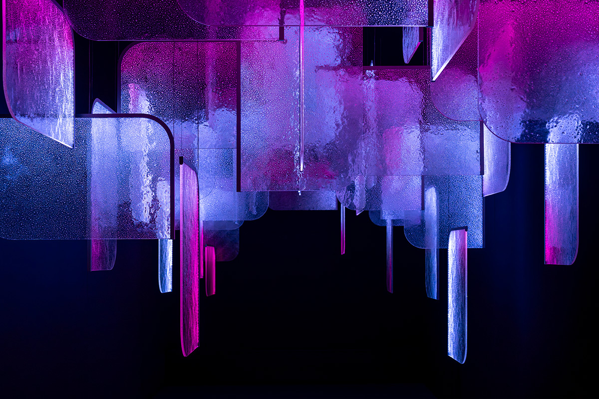 Un peu comme une image qui se transforme sous nos yeux. Comme le résument les créateurs, « la lumière se libère dans le verre, prenant une qualité liquide ».