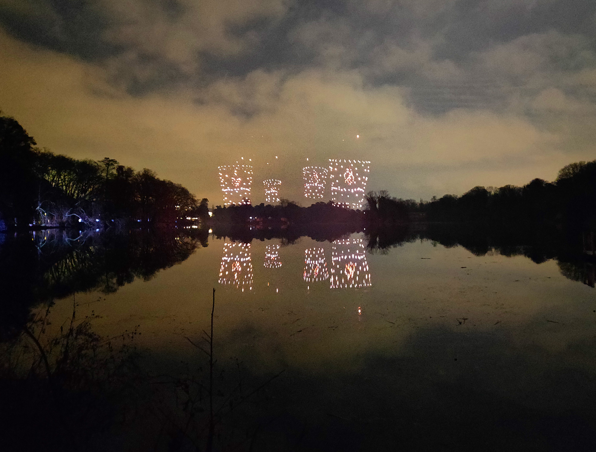 Le choix du lieu n’a rien d’anodin : le spectacle se déroule au-dessus du lac. Les drones décollent de l’île du Souvenir. Un clin d’œil chargé de sens. « Il y a de la magie dans le fait de commencer sur une île dédiée à la mémoire. »