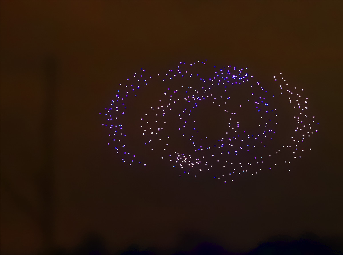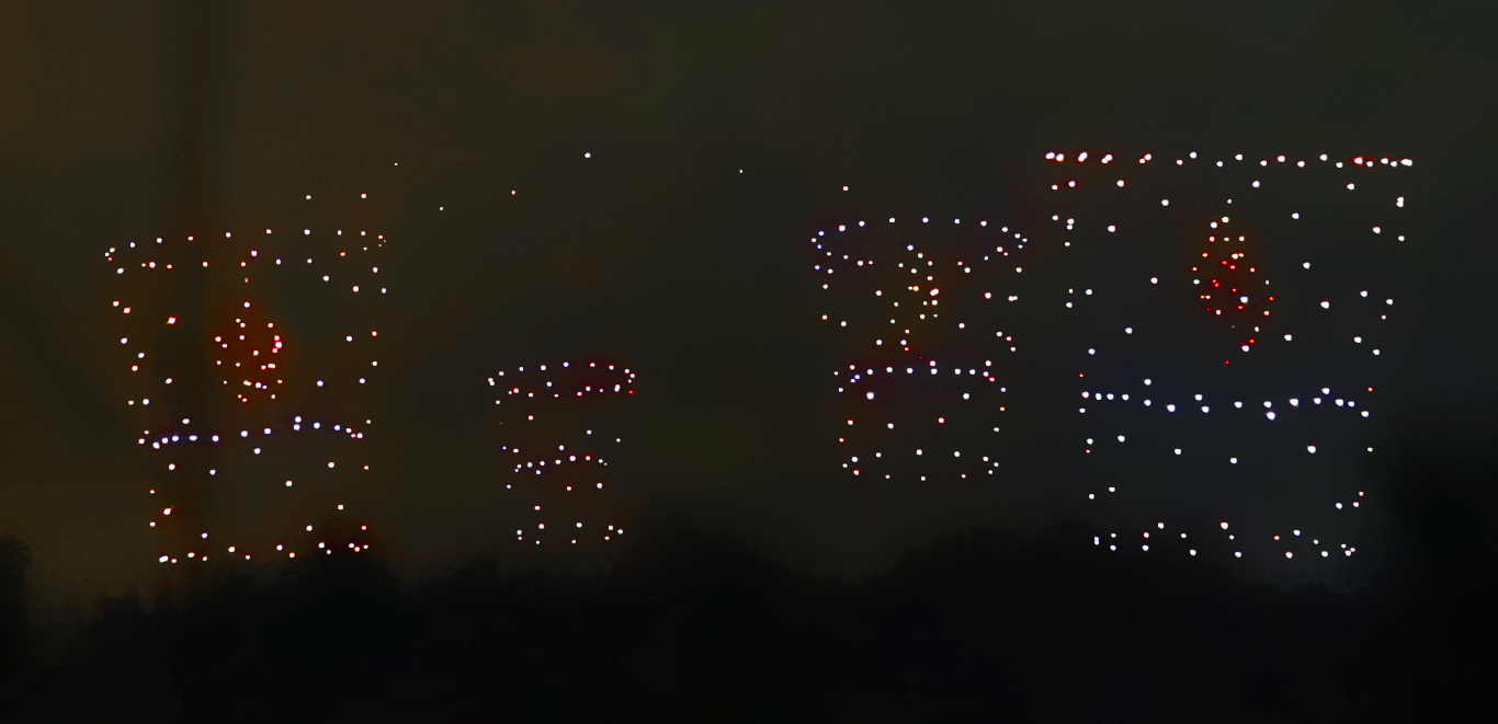 Il en ressort un ballet de drones lumineux, où les formes s’animent dans une danse continue. Le directeur artistique, Pierre Gruner, Allumee, a injecté sa signature, refusant la facilité de figures géométriques pour proposer des mouvements plus naturels, évocateurs, presque humains. Le tout en maintenant ce qui fait sa renommée de la compagnie française : un récit visuel et musical en perpétuelle transformation.