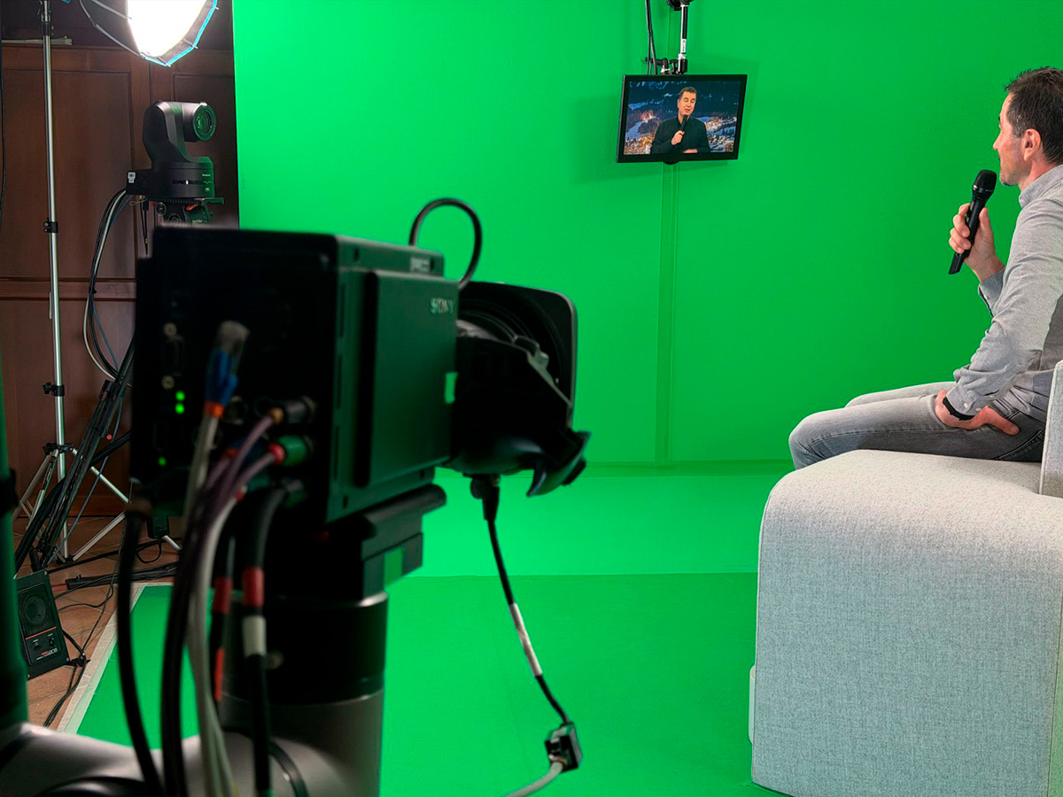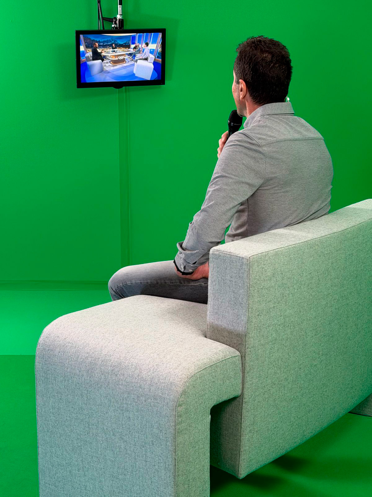Deux murs LED habillent le fond et le côté droit du plateau, notamment pour l’émission matinale Télématin, de France 2. Le mur courbe en arrière-plan du présentateur a une résolution de 2 496 x 960 pixels. Ils ajoutent une profondeur visuelle à l’image télévisuelle.